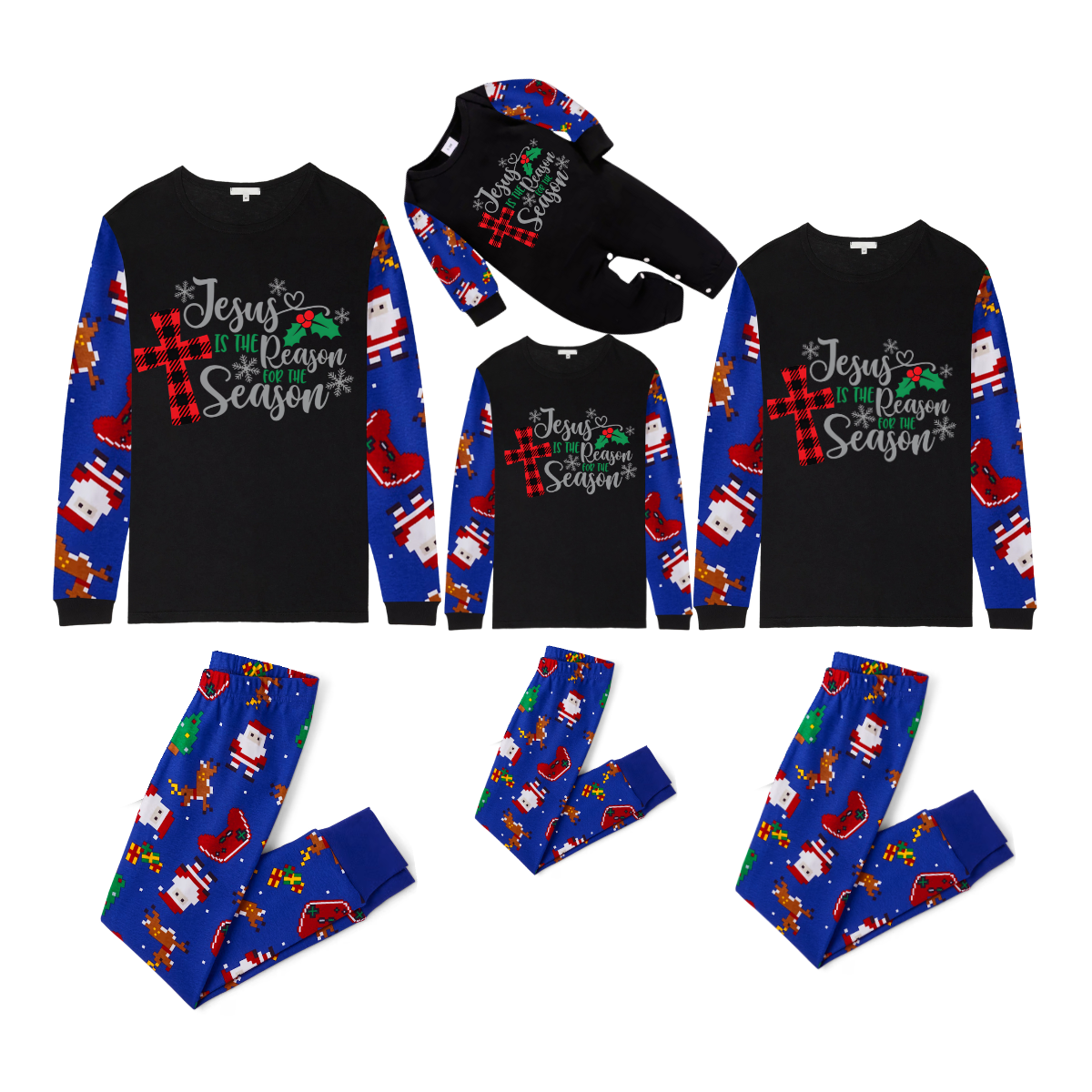 Christmas Family Matching Pajamas-Cozy Blue Pjs Set with "Christmas Crew Making Memories Together" Slogan Print