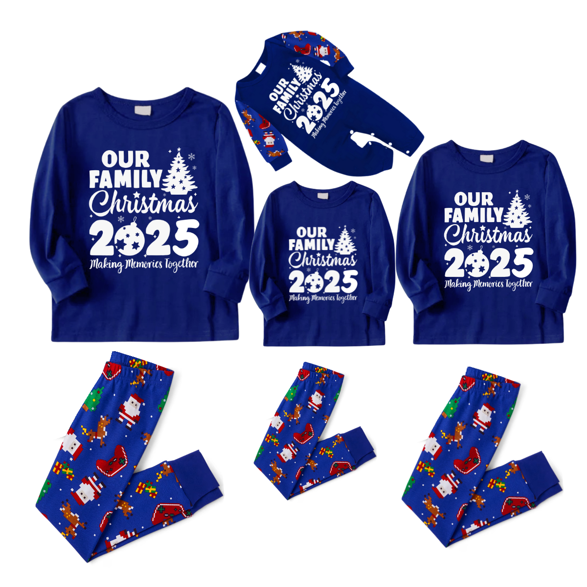 Christmas Family Matching Pajamas-Cozy Blue Pjs Set with "Family Christmas 2025 Making Memories Together" Print