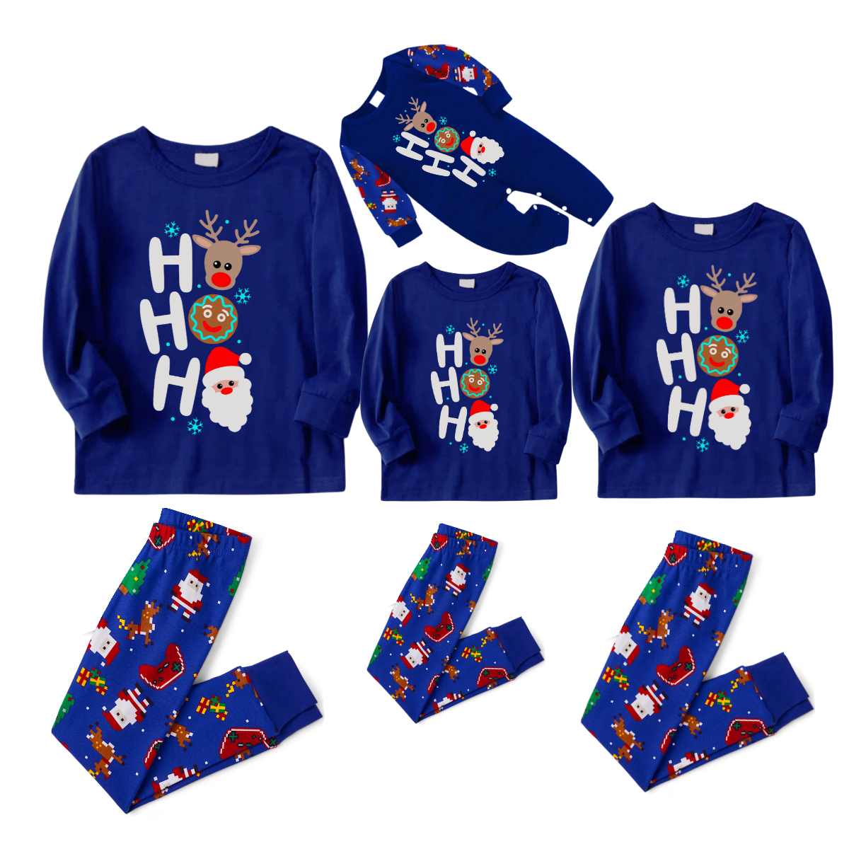 Christmas Family Matching Pajamas-Cozy Blue Pjs Set with "Wish You A Merry Christmas" Slogan Print