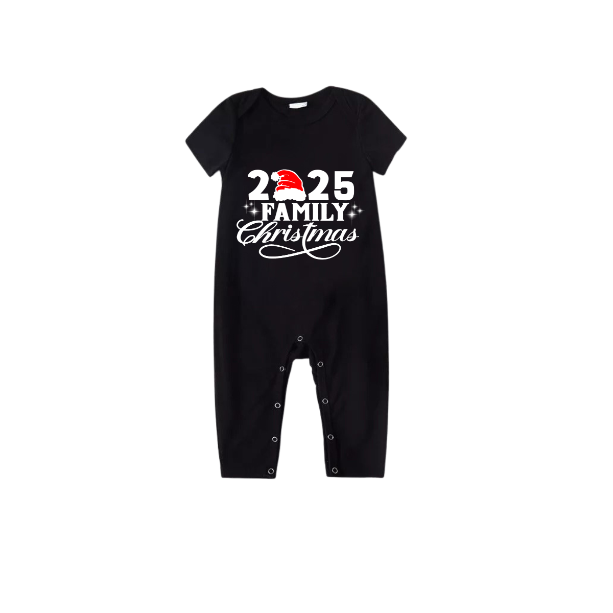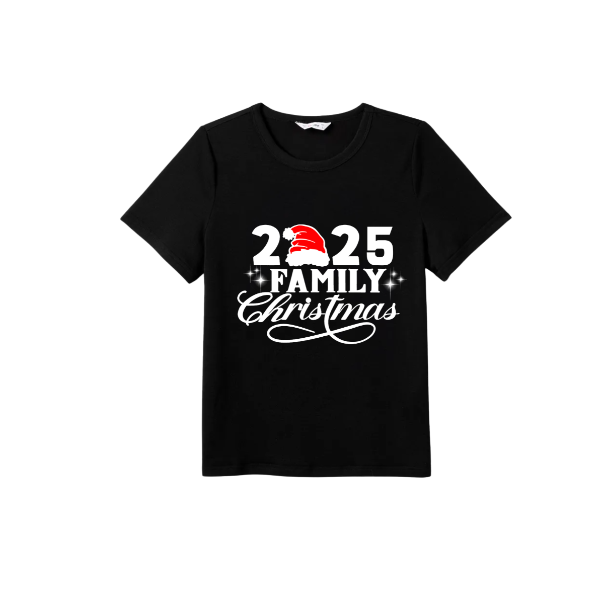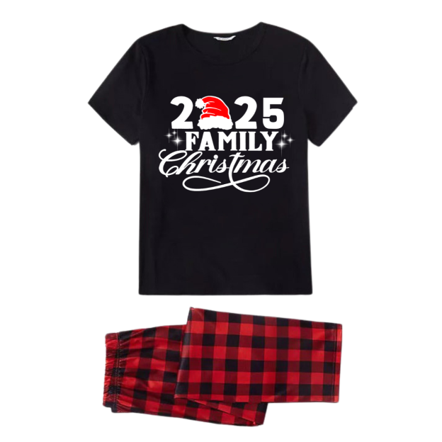 "2025 Family Christmas" Letter Print Black Short Sleeve with Red & Black Plaid Pant Family Matching Pajamas