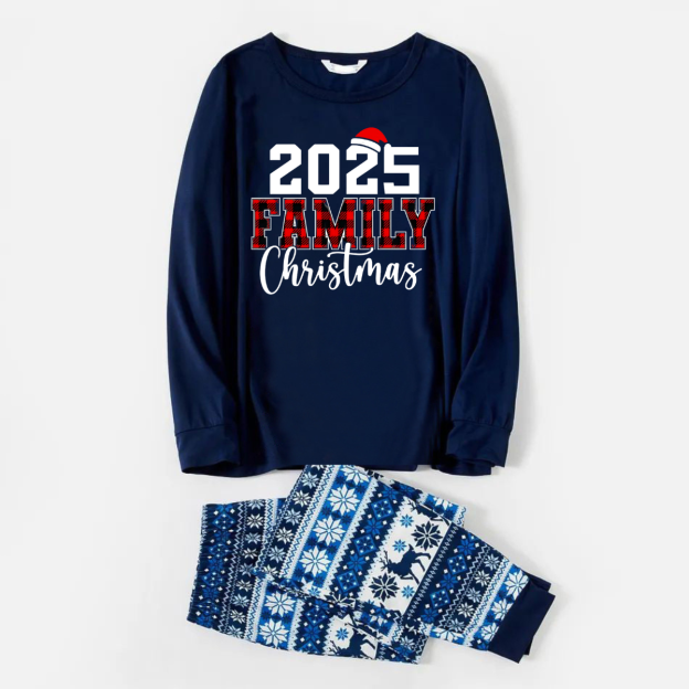 2025 Family Christmas Text Print Blue Family Christmas Matching Pajamas