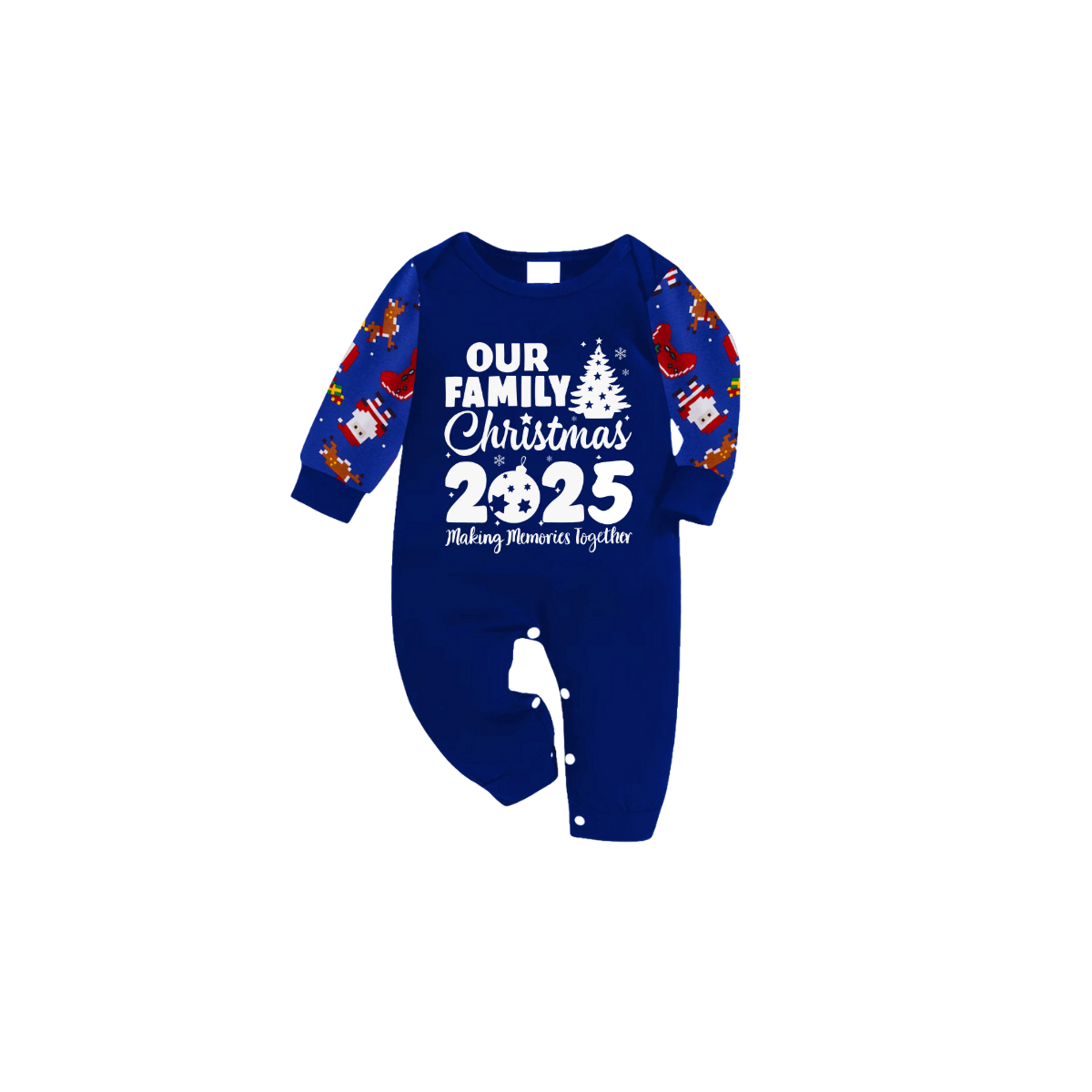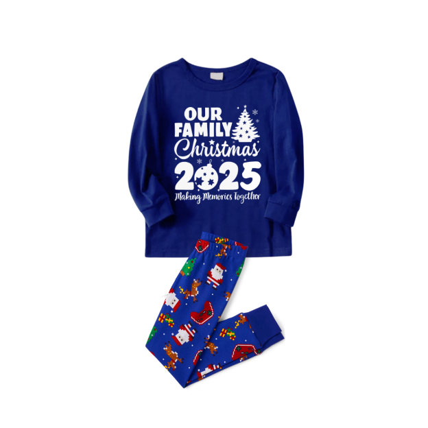 2025 Our Family Christmas Matching Pajamas - Blue with Santa Pattern