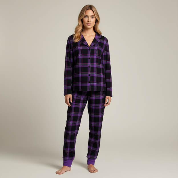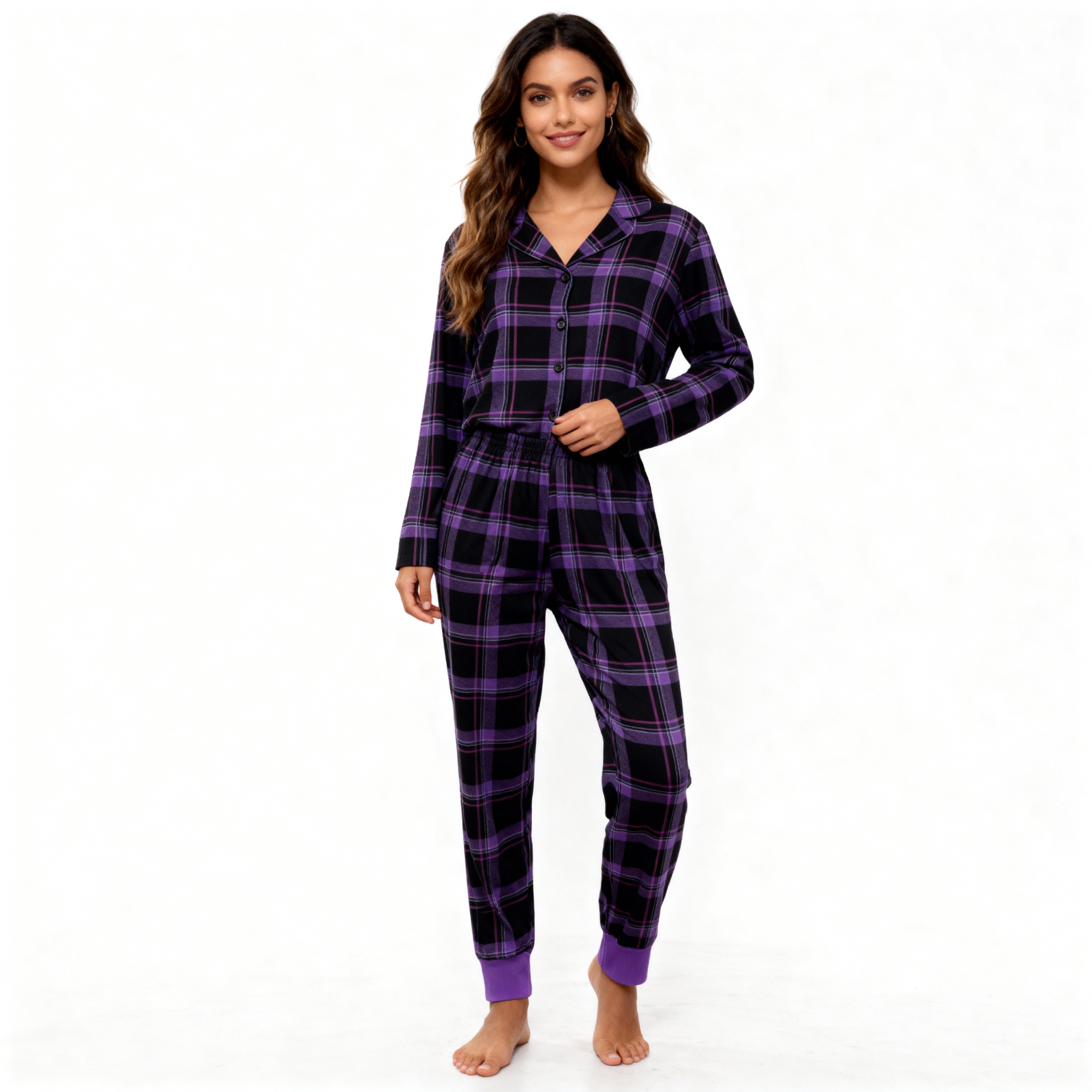 Christmas Purple Plaid Button-Front Pajamas Family Pajamas Sets