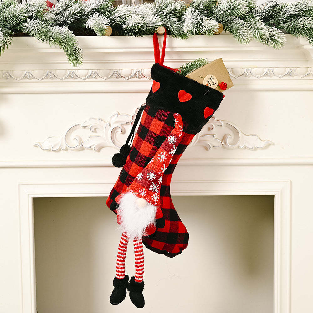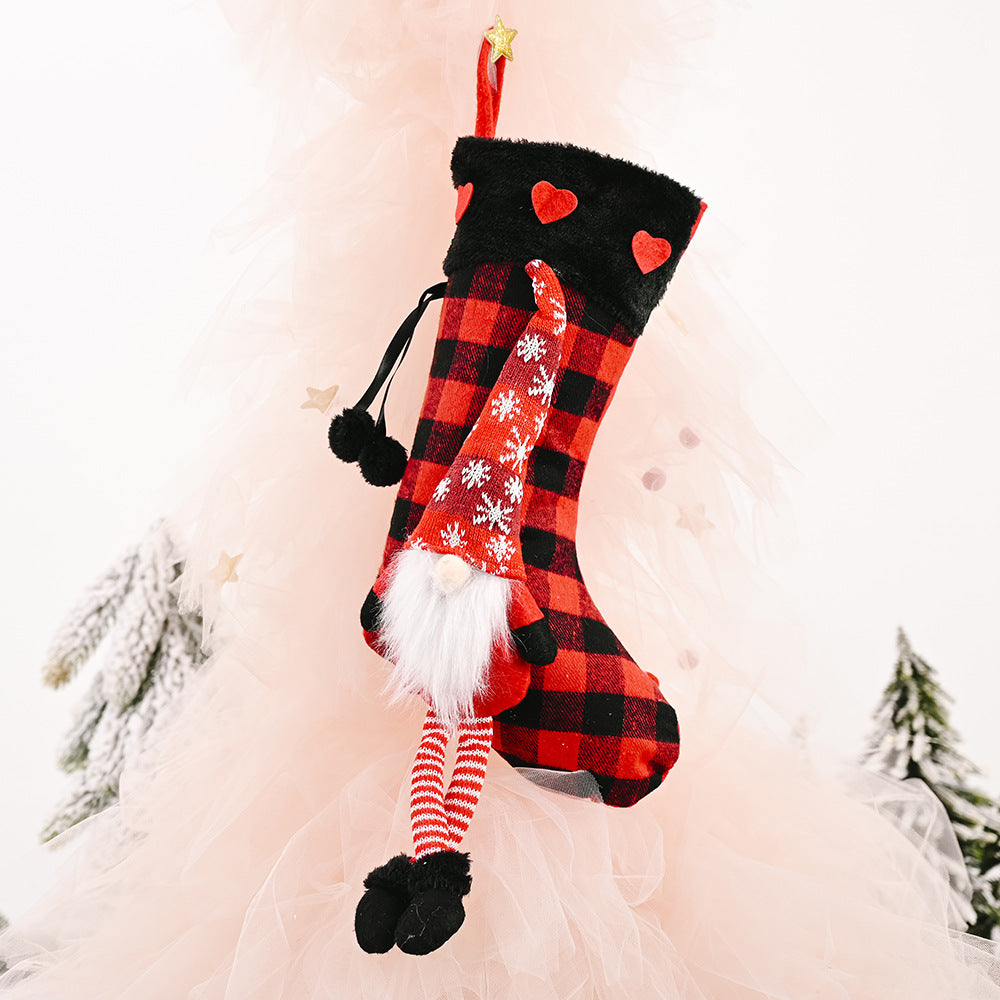 Christmas Tree Ornaments Love Print Fluffy Hanging Leg Plaid Red/gray Christmas Gift Socks