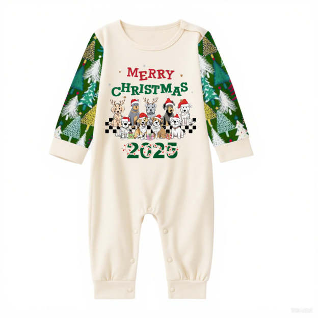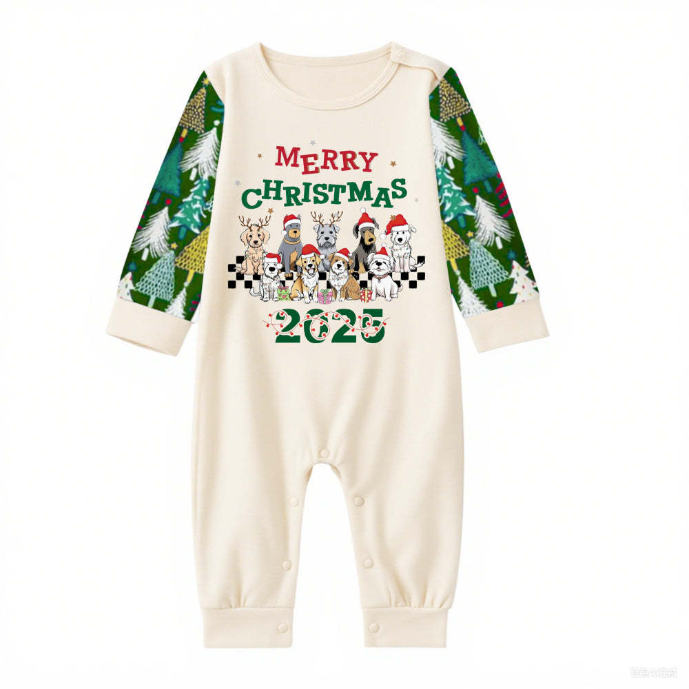 Family Christmas Pajamas Set With "Merry Christmas" and Dog Print