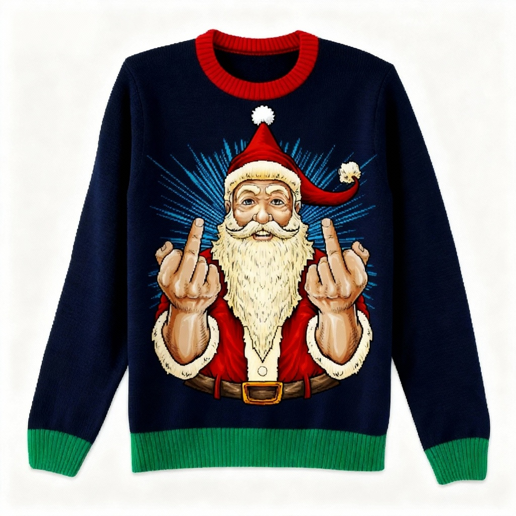 Festive & Fearless: Funny Santa Print Christmas Jumper