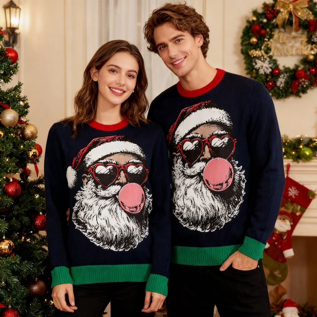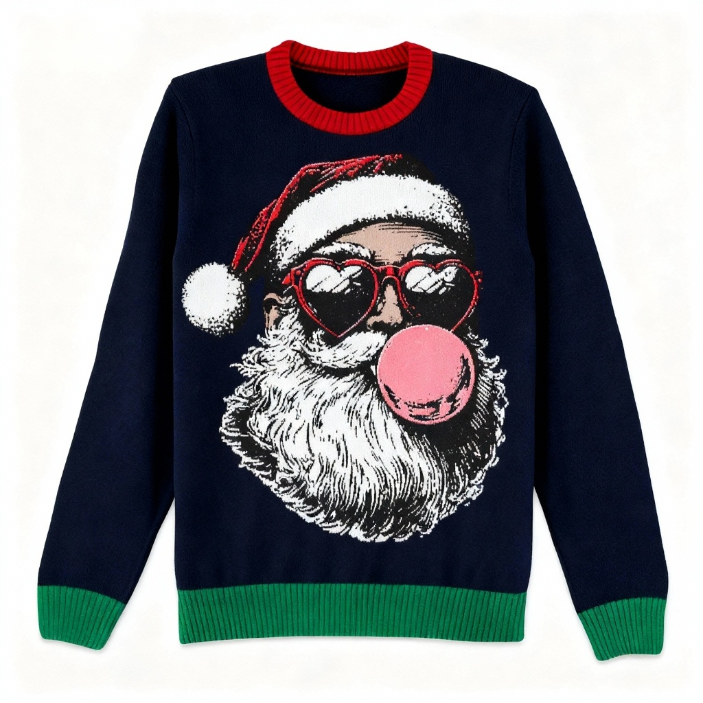 Festive & Fearless: Goofy Santa Claus Pattern Print Christmas Jumper