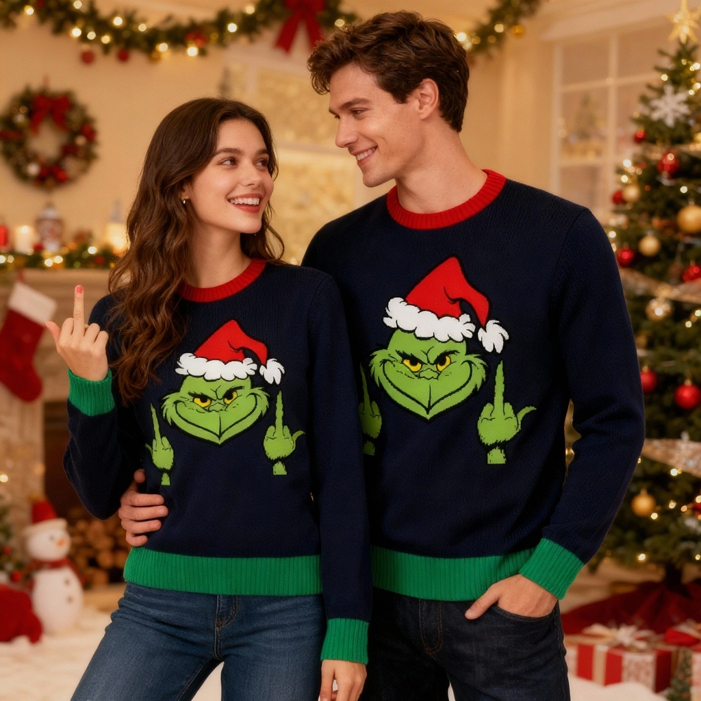 Festive & Fearless: Playful Cartoon Print Christmas Jumper