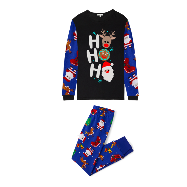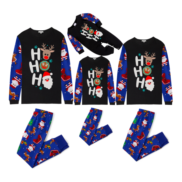 HO HO HO Christmas Pajama Set with Santa, Reindeer, and Gingerbread