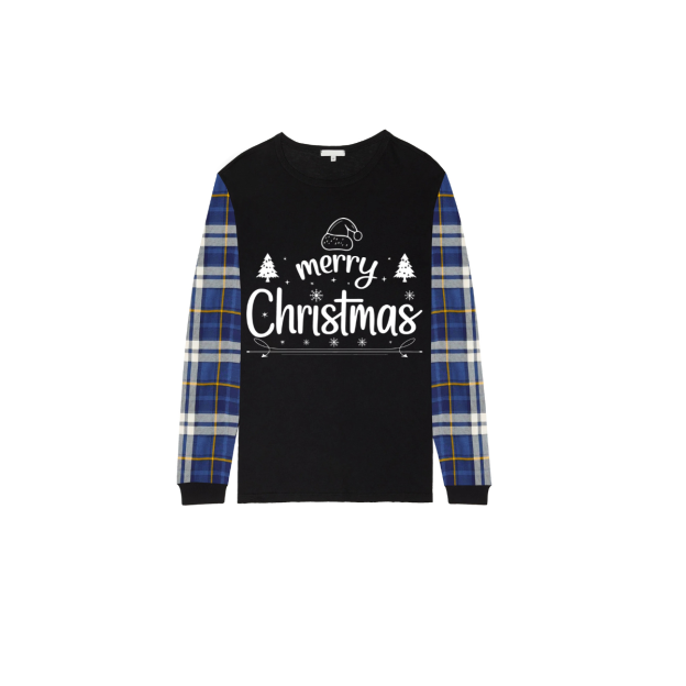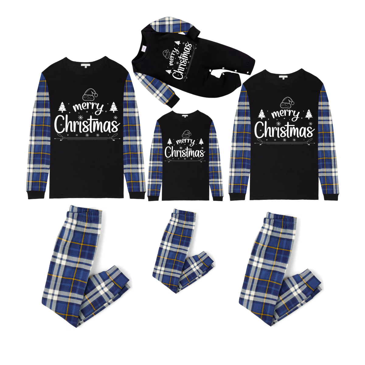 Chalkboard Merry Christmas Pajamas - Blue Plaid