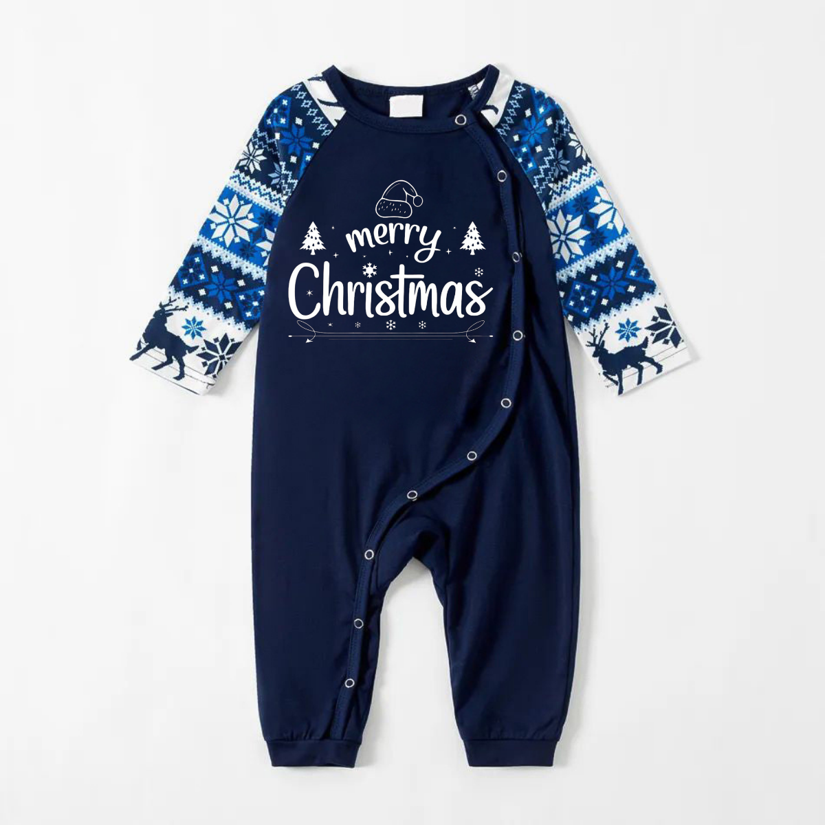 Merry Christmas Print Blue Family Christmas Matching Pajamas