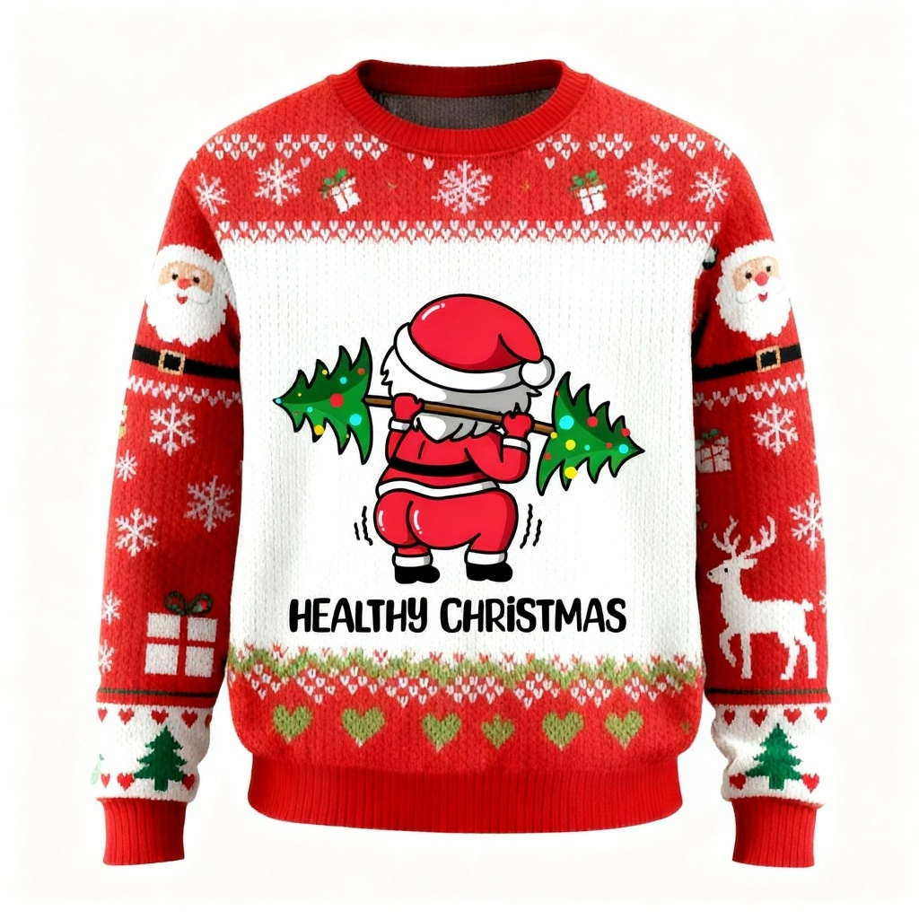 Soft Fleece Santa & Tree Pattern Ugly Sweater - Unisex Christmas Party Essential