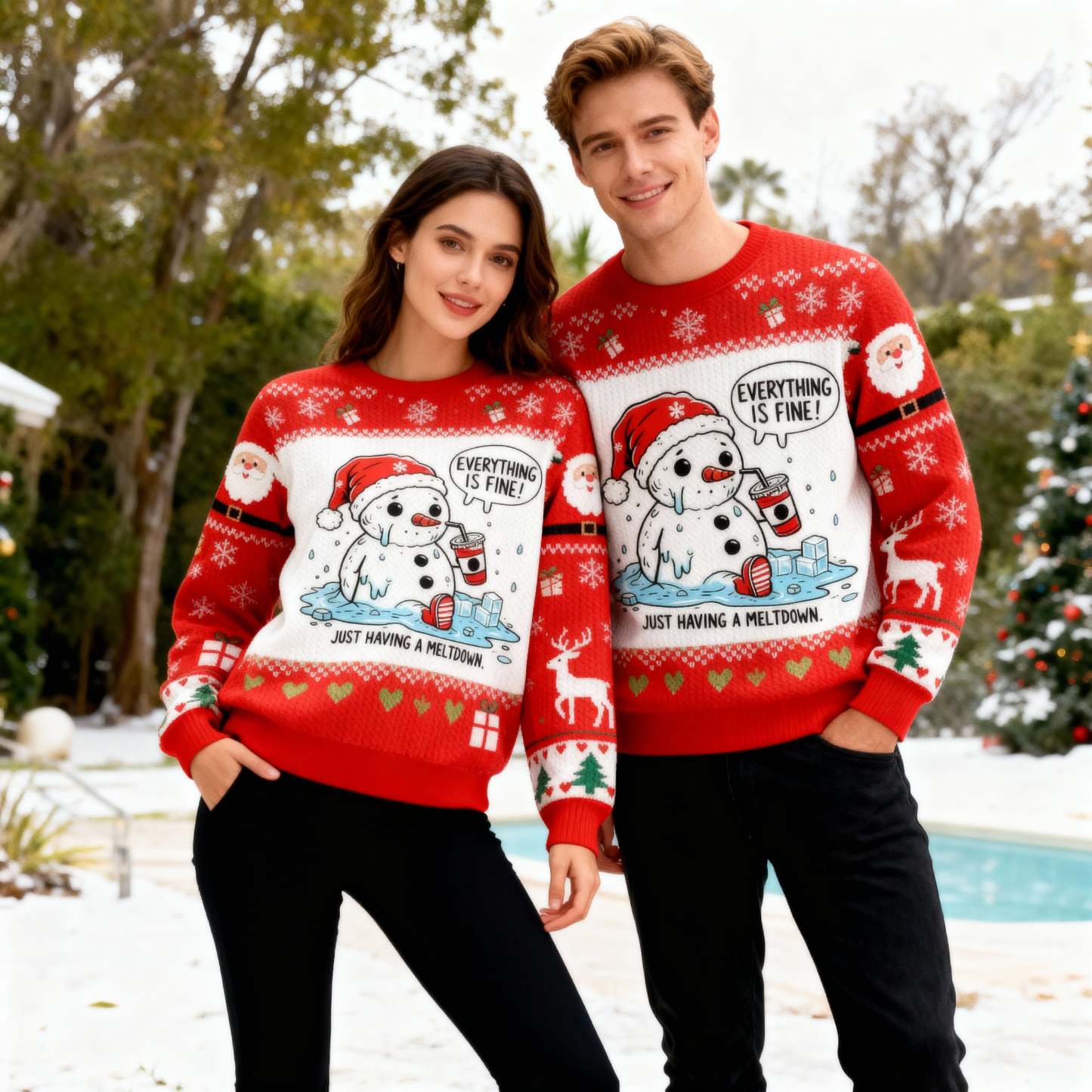 Soft Fleece Snowman Pattern Ugly Sweater - Unisex Christmas Party Essential