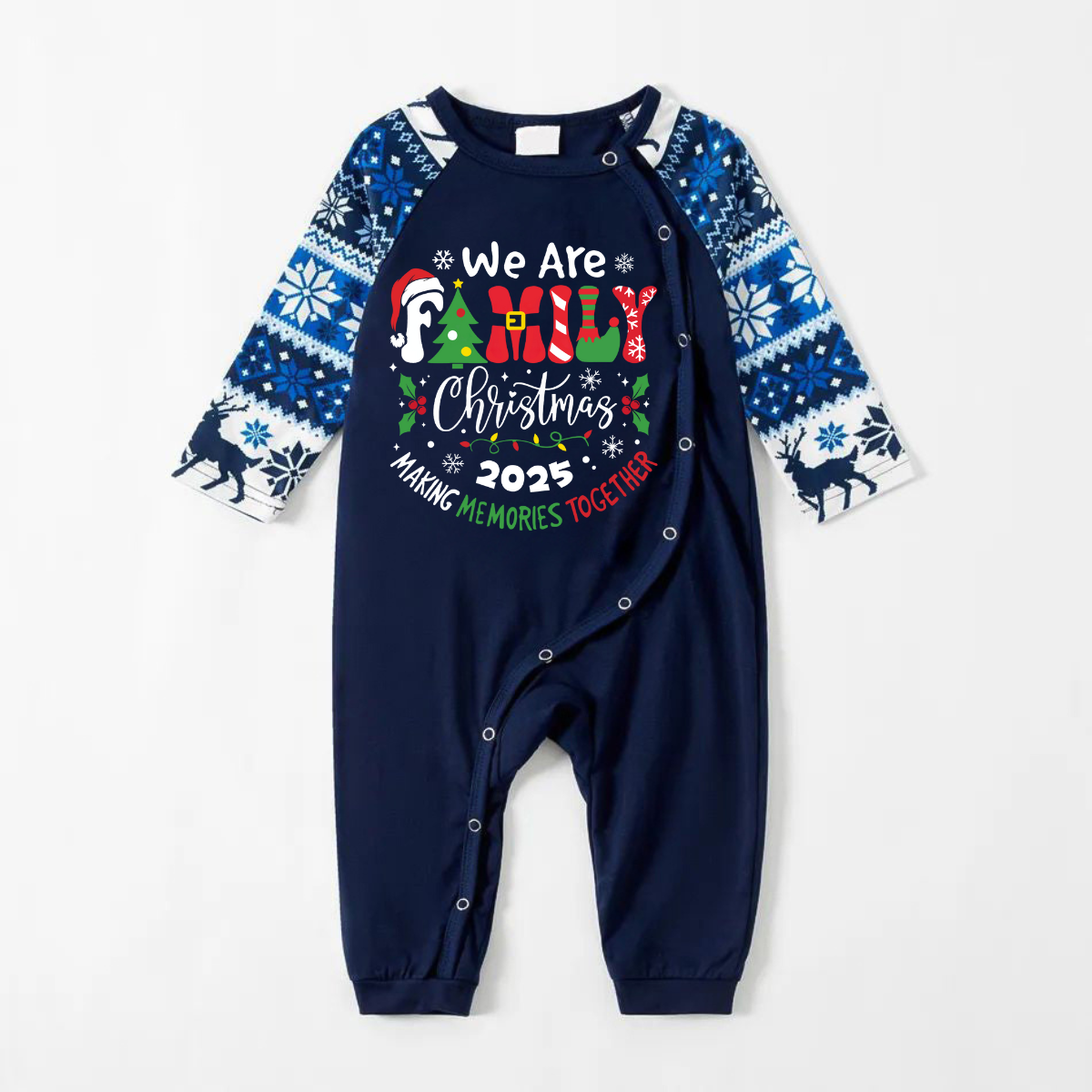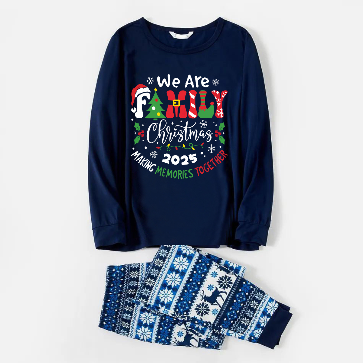 "We are Family 2025 Christmas Make Memories Together" Slogan Print Blue Long Sleeve With Blue Floral Pants Family Matching Pajamas Sets