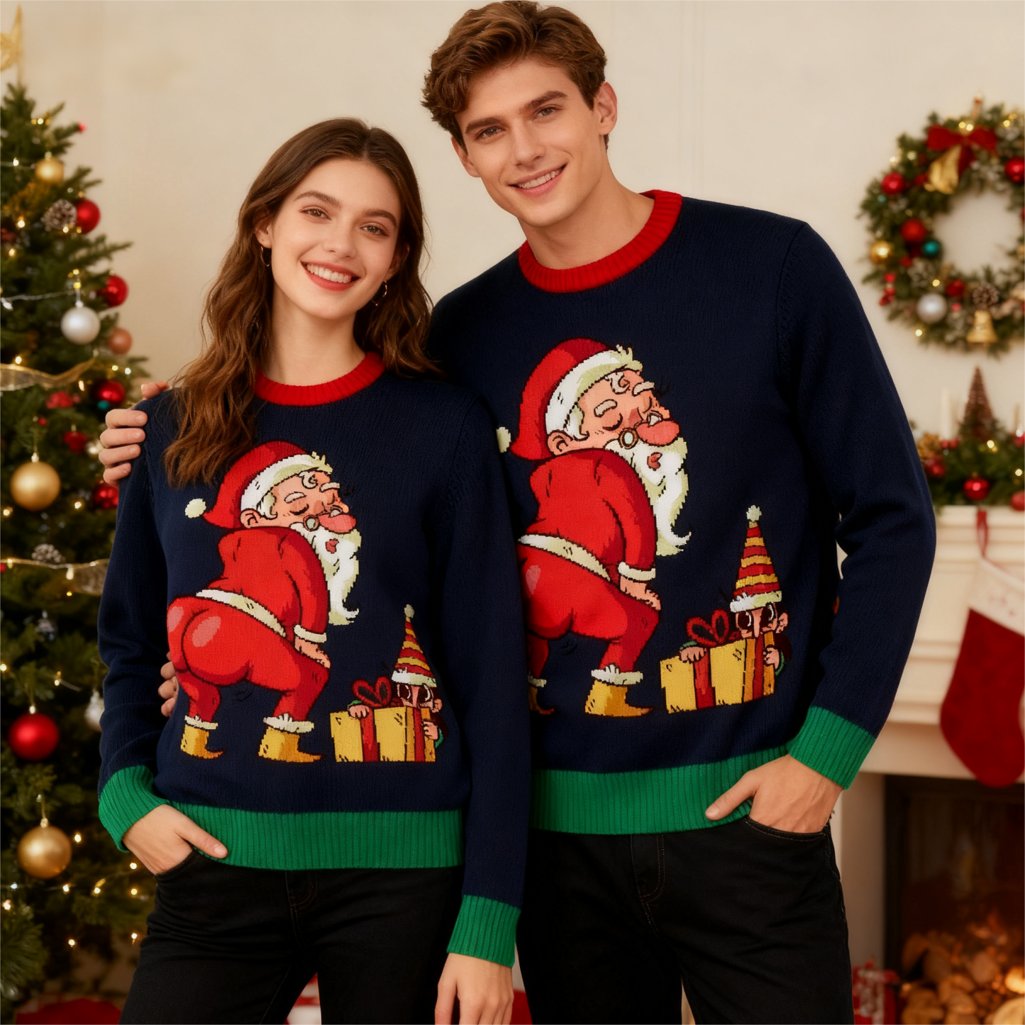 Zany Santa Print Holiday Sweater - Intentional Festive Quirk