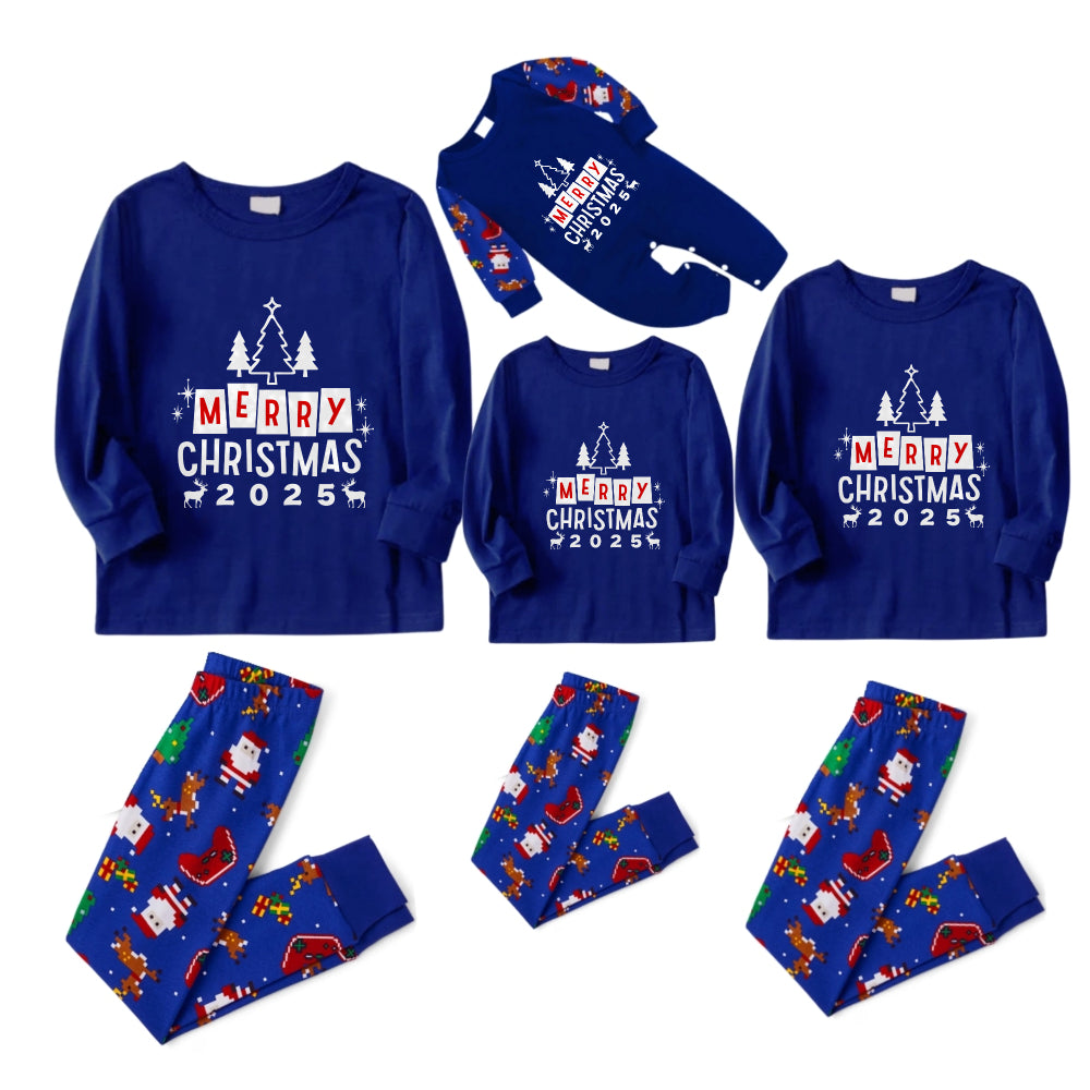 Christmas Family Matching Pajamas-Cozy Blue Pjs Set with "Merry Christmas 2025" Print