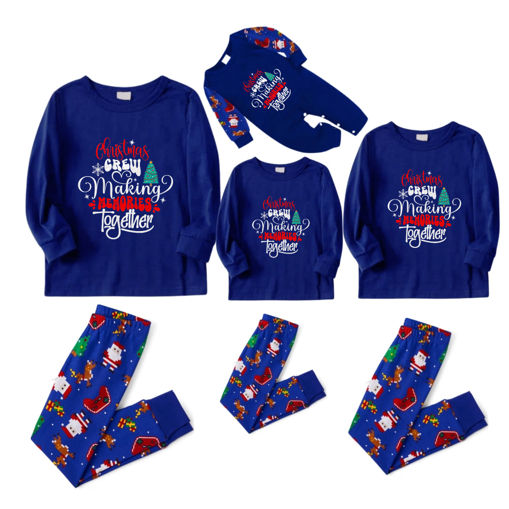 Christmas Family Matching Pajamas-Cozy Blue Pjs Set with "Christmas Crew Making Memories Together" Slogan Print