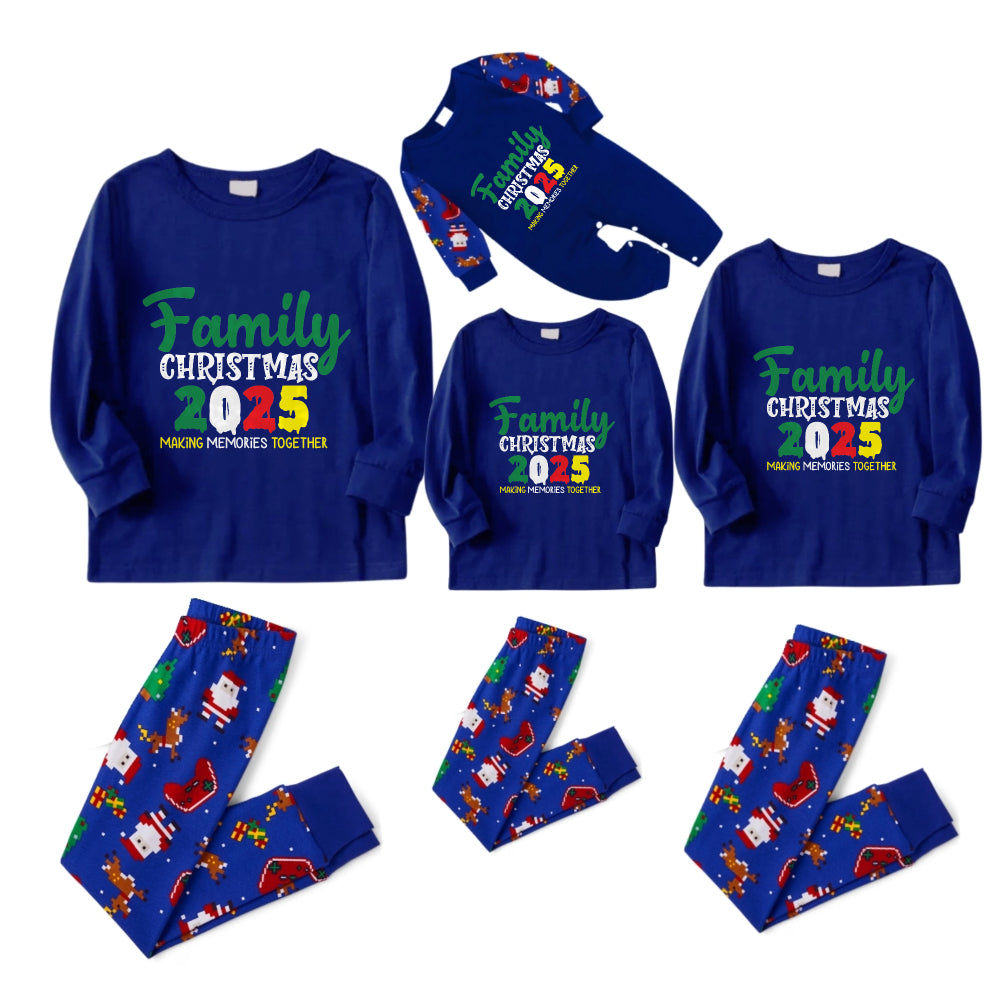 Christmas Family Matching Pajamas-Cozy Blue Pjs Set with "Family Christmas 2025 Making Memories Together" Print