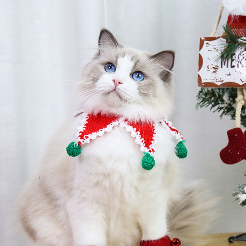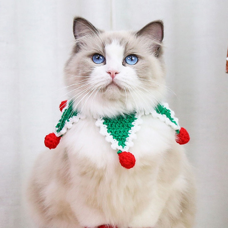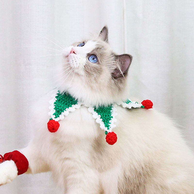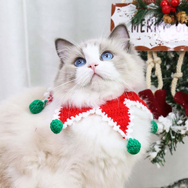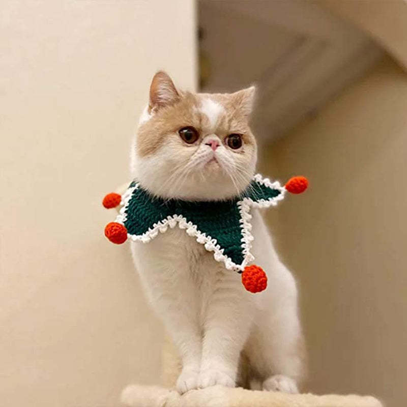 1PC Pet Cat Knitted Five-pointed Star Scarf Collar Pets Christmas Costume