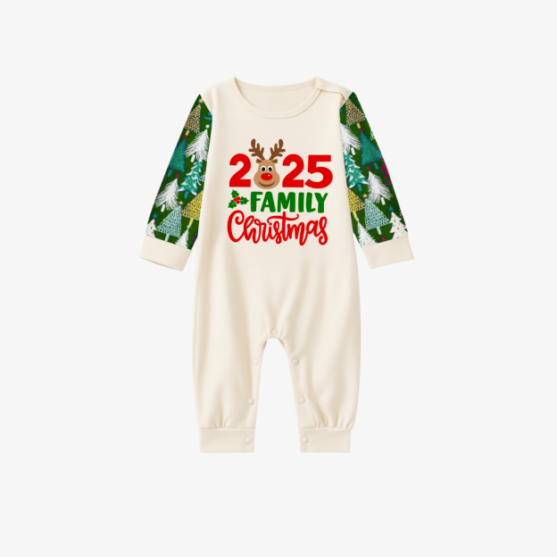 2025 Family Matching Christmas Pajamas-Cream Tops & Christmas Tree Pants