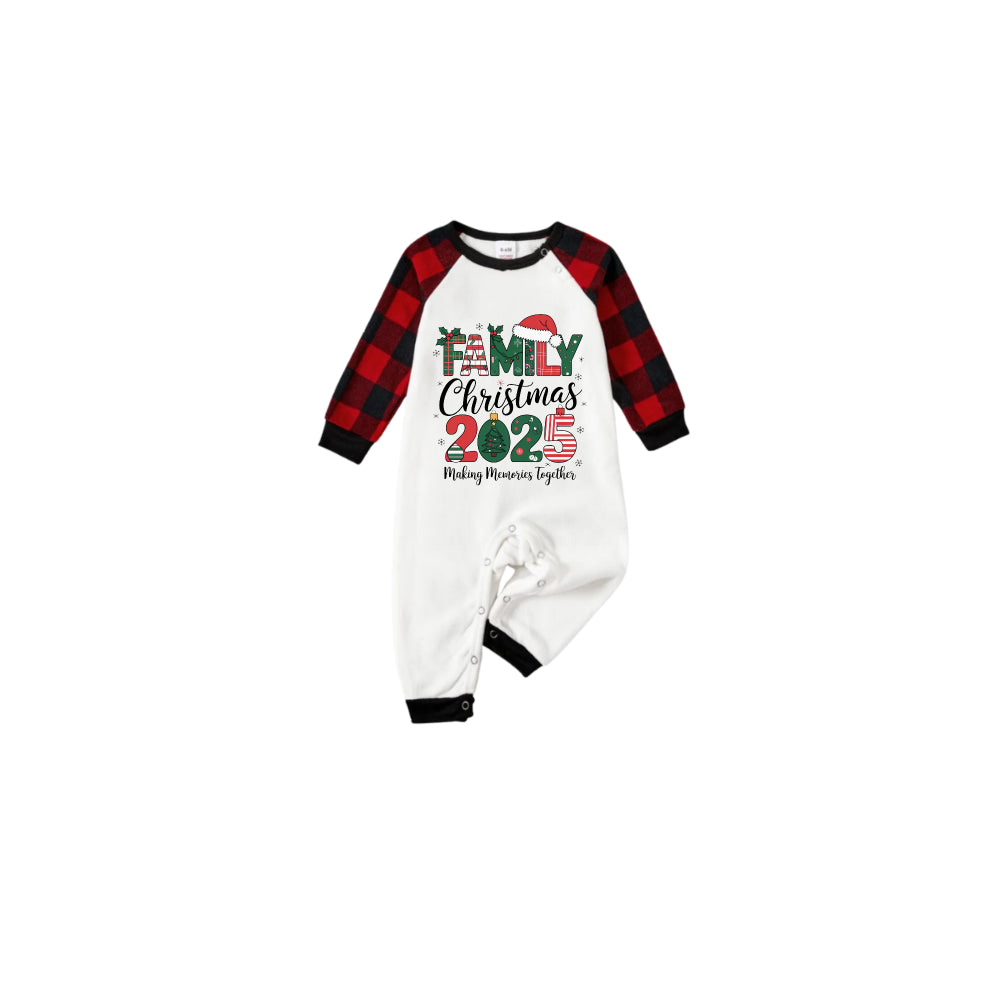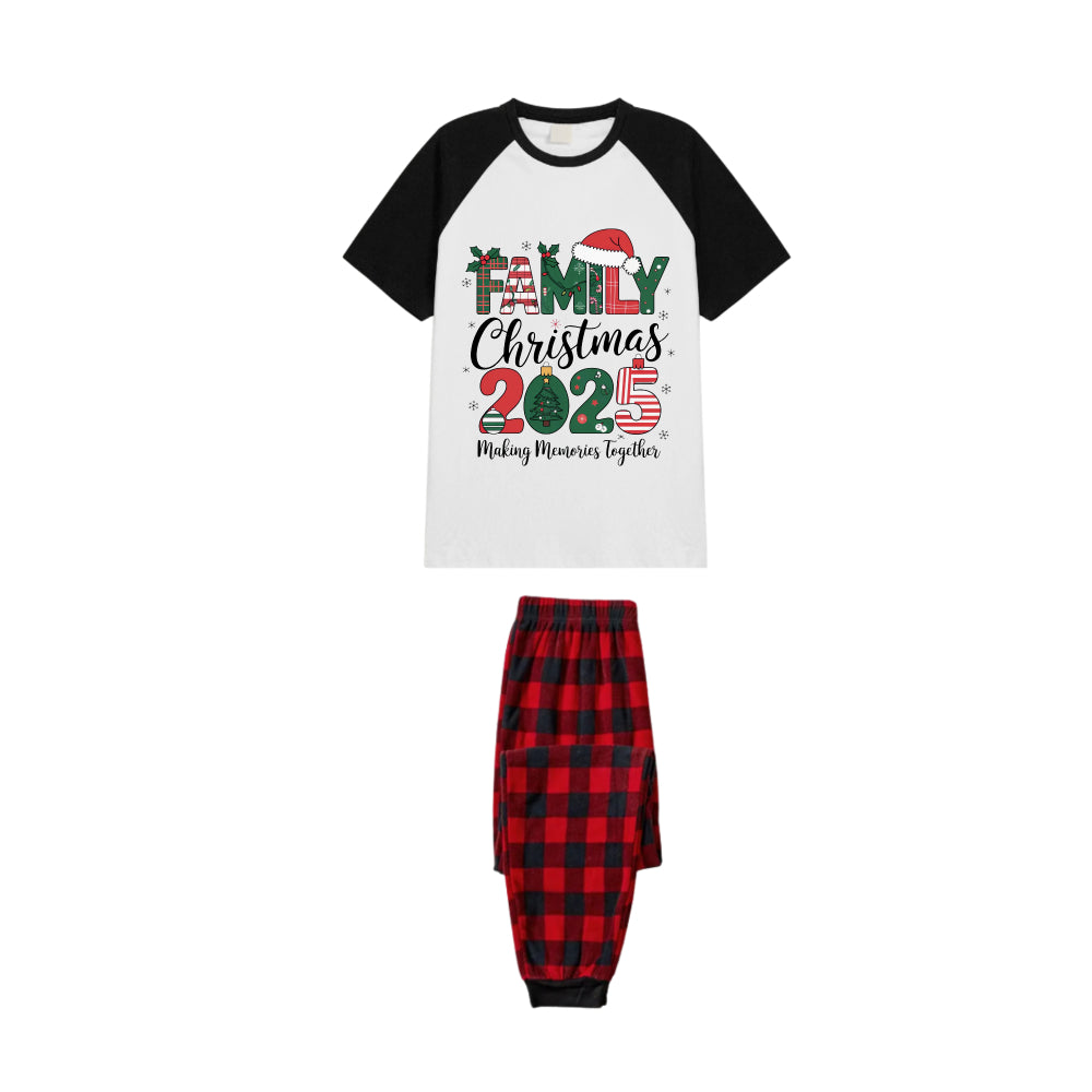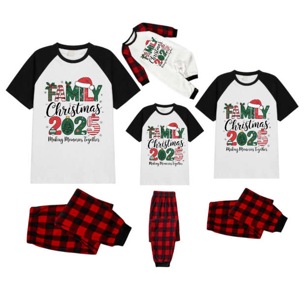 Black and Red Plaid Raglan Short Sleeve Pajamas Set With "Family Christmas 2025" and Christmas Pattern Print
