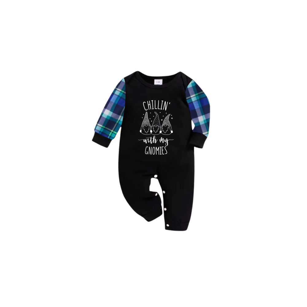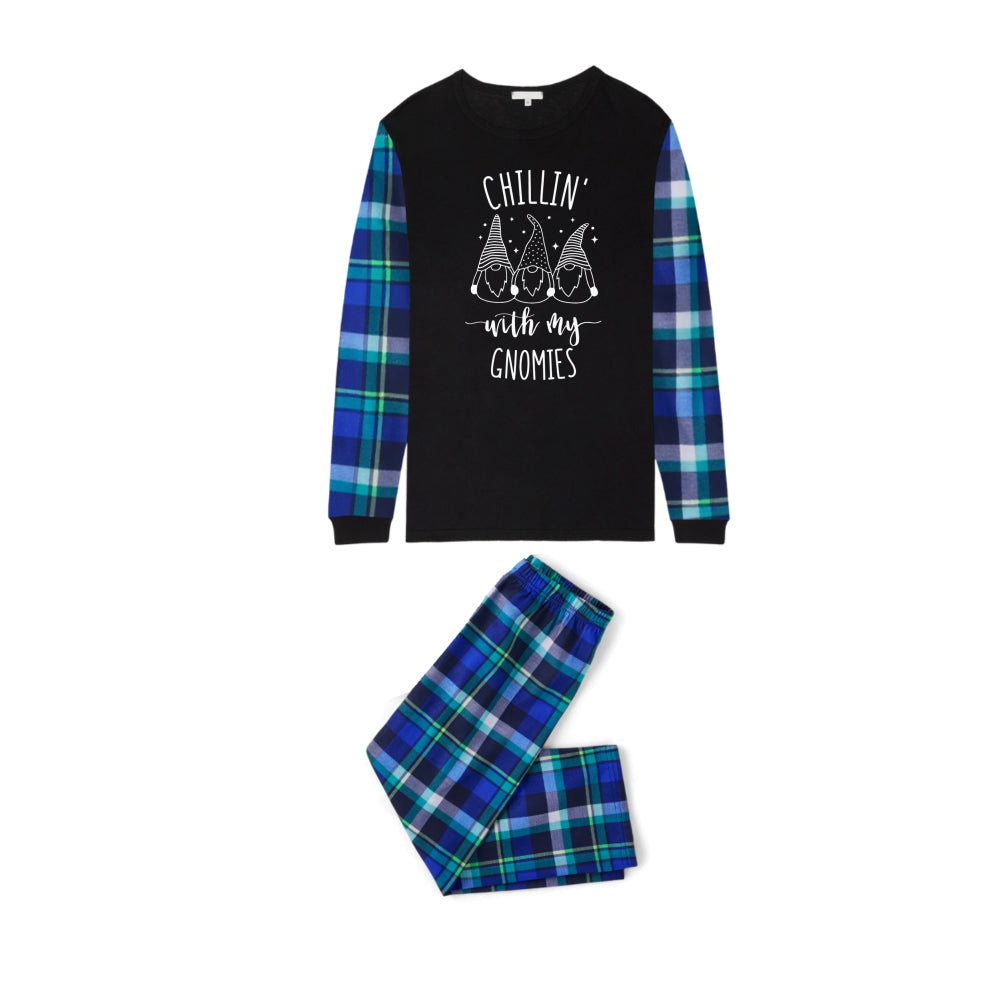 Blue and Green Plaid Christmas Pajamas Set With "Chillin' with my Gnomies" White and Black Print