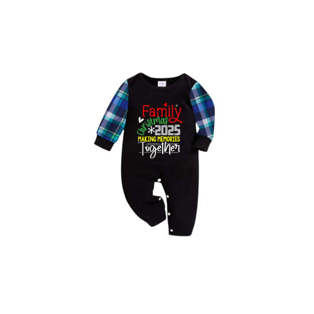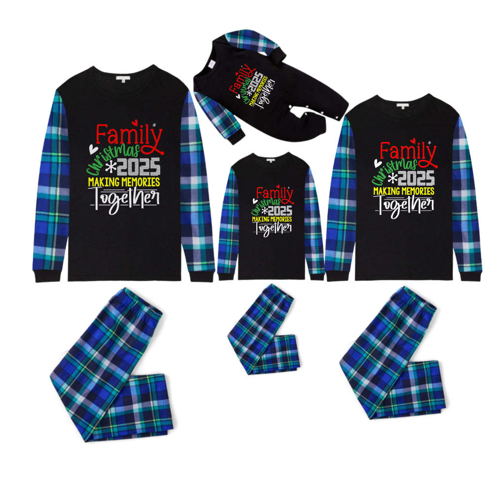 Blue and Green Plaid Christmas Pajamas Set With "Family Christmas 2025 Making Memories Together" Playful Text Print