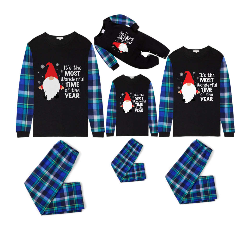 Blue and Green Plaid Christmas Pajamas Set With Santa Claus and "It is the MOST Wonderful TIME of the YEAR" Print