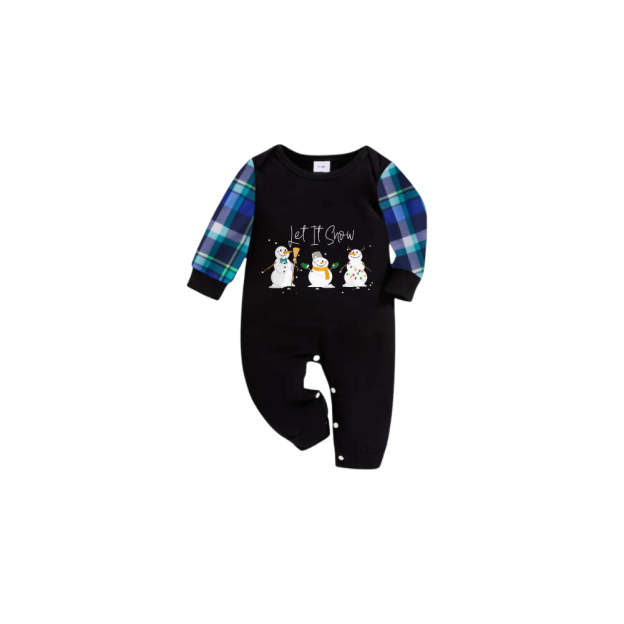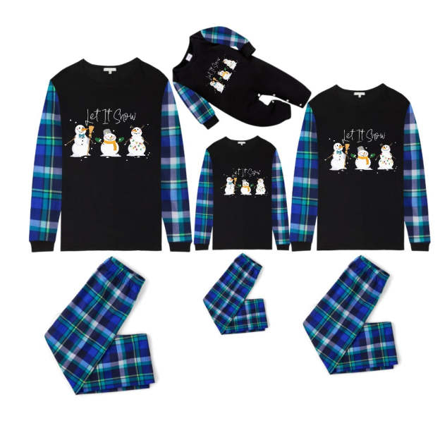 Blue and Green Plaid Christmas Pajamas Set With Snowman and "Let It Snow" Print