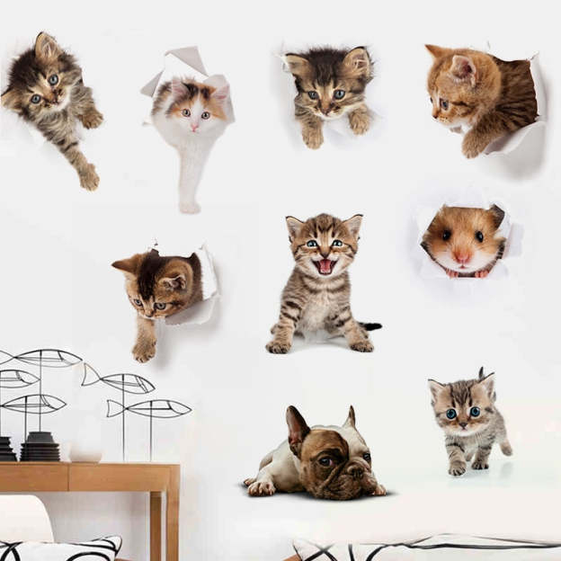 Cat Vivid 3D Smashed Switch Wall Sticker Bathroom Toilet Kicthen Decorative
