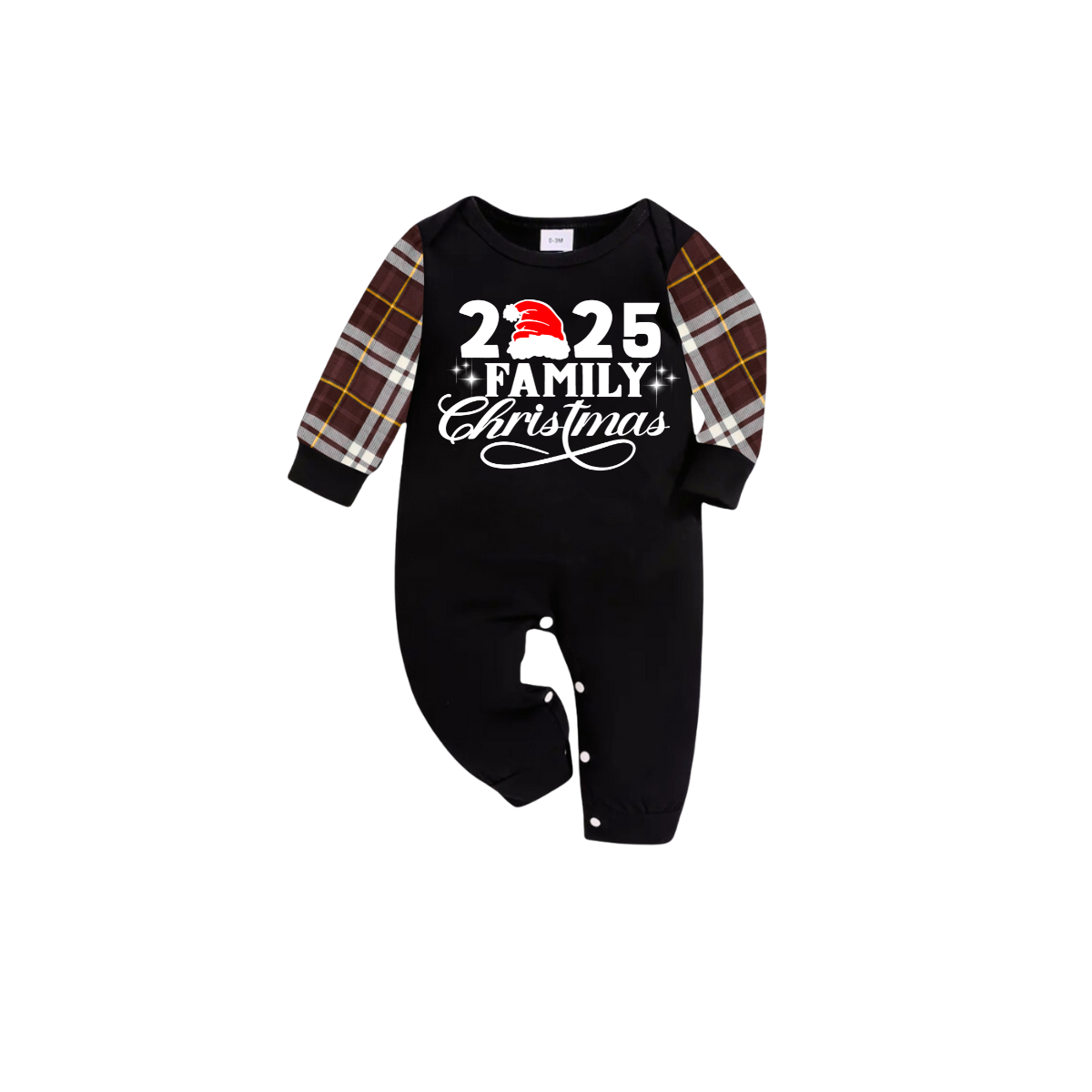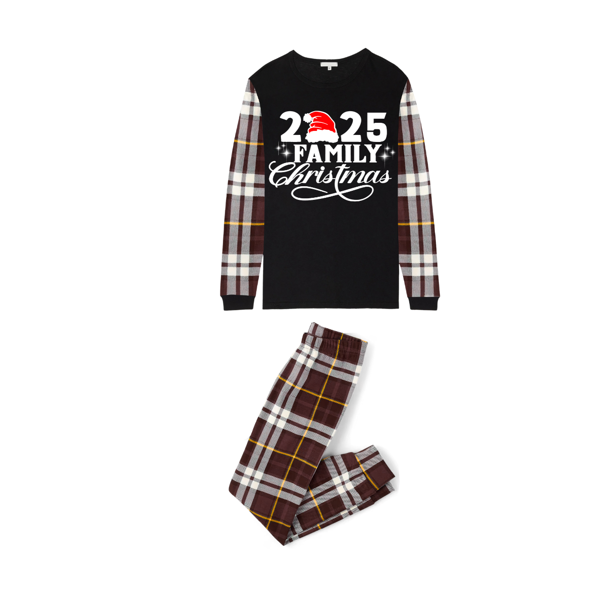 Christmas 2025 Plaid Family Matching Family Pajamas Set - Black Top, Brown Pants, Plaid Pattern
