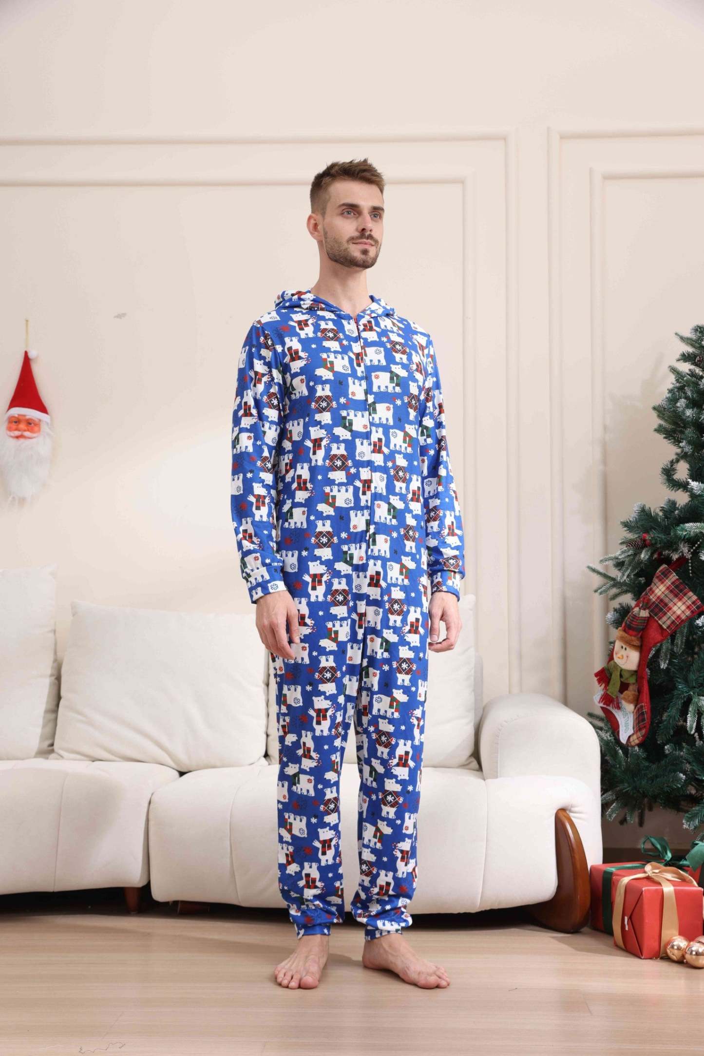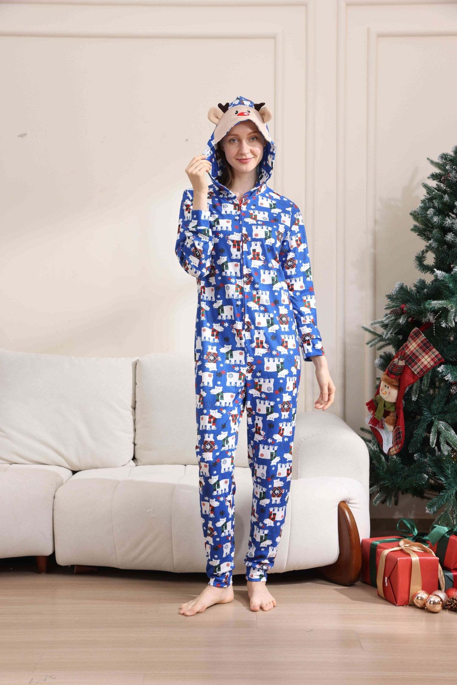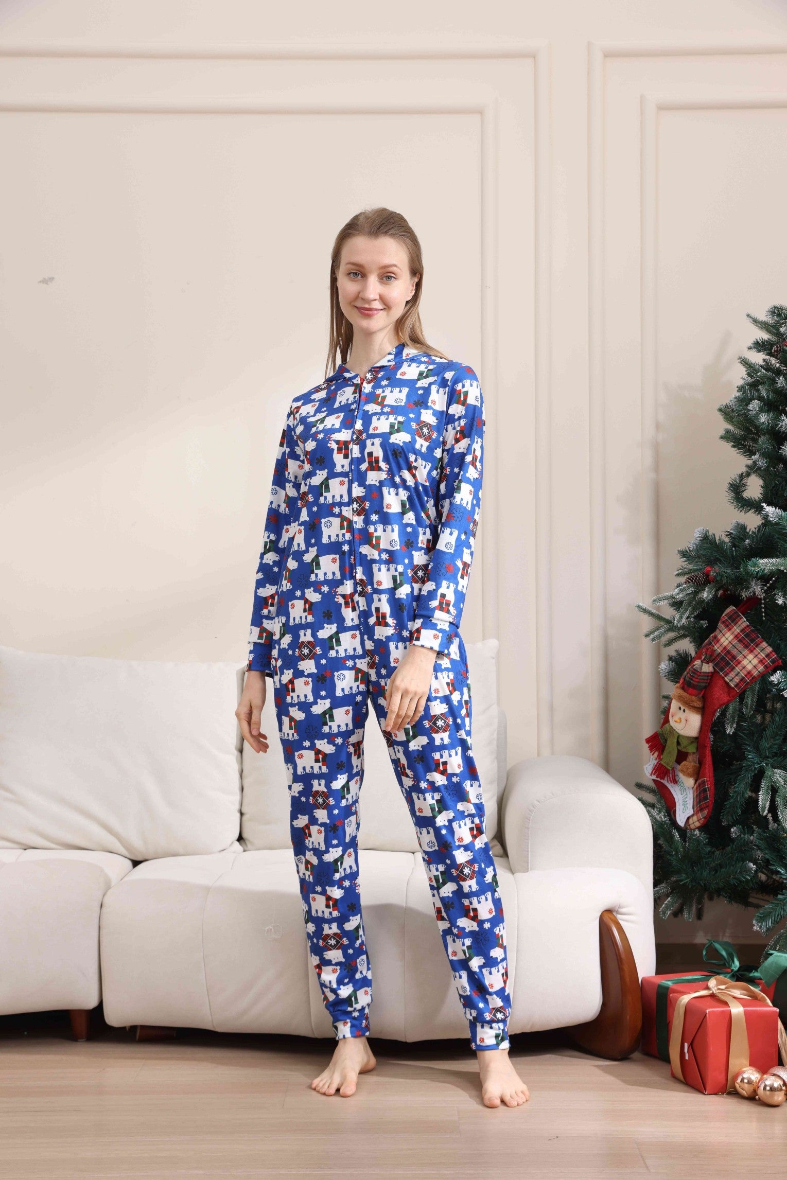 Christmas Bear Print Long-sleeve Onesies Pajamas