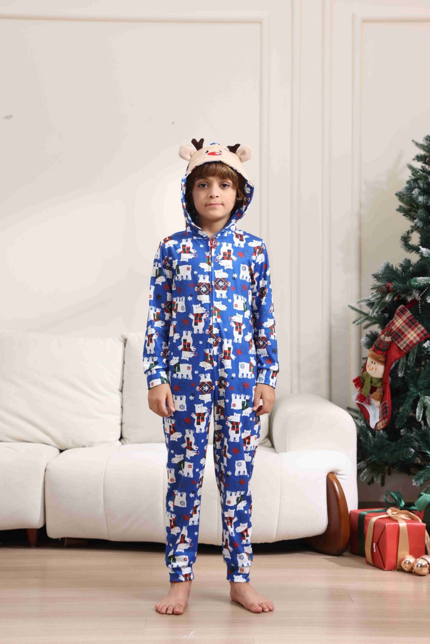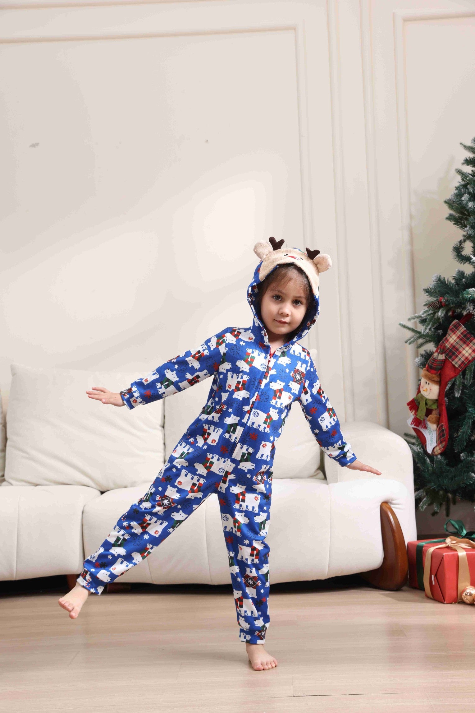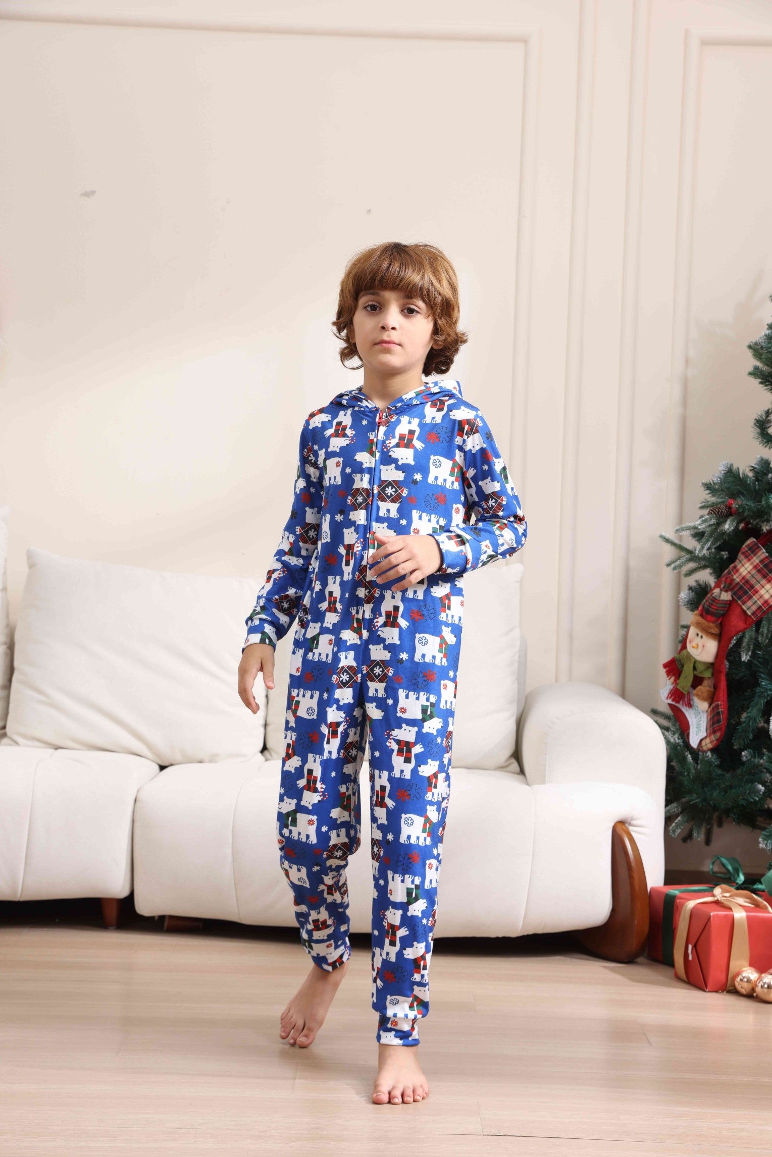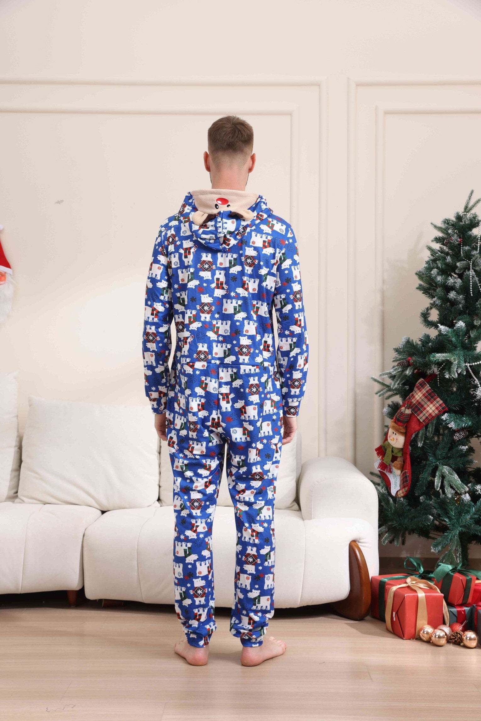 Christmas Bear Print Long-sleeve Onesies Pajamas