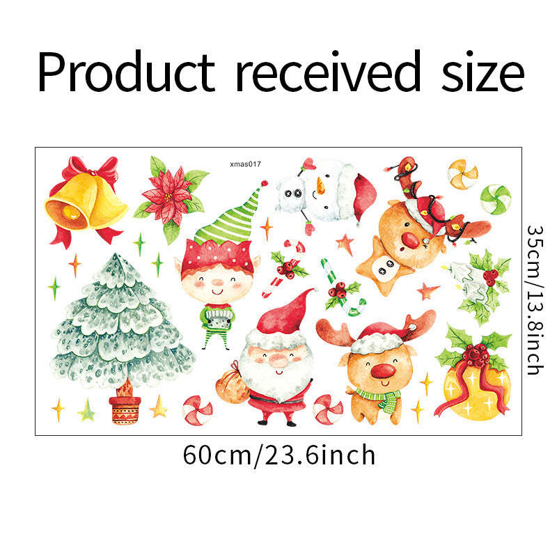 Christmas Cartoon Painted Santa Snowman Tree Kid Wreath Bell Wall Sticker Glass Door Decoration xmas017