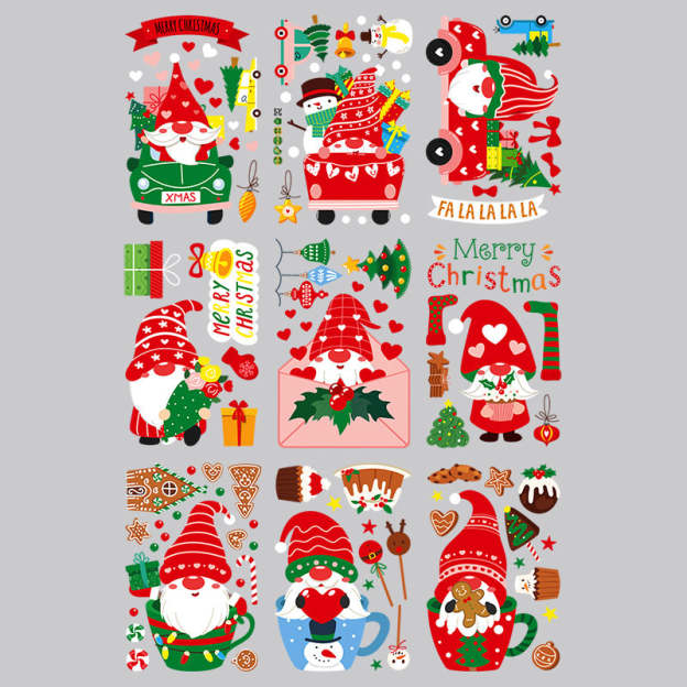 Christmas Decoration Gnome with Car Cup Envelope Tree Dessert Wall Window Sticker SKJD2315