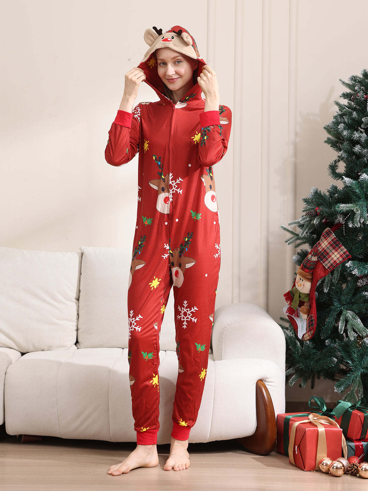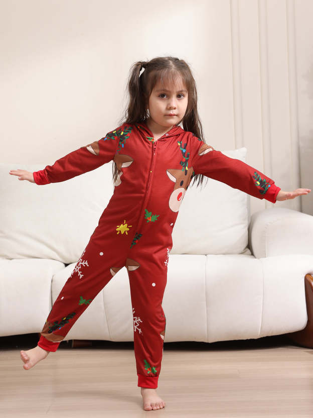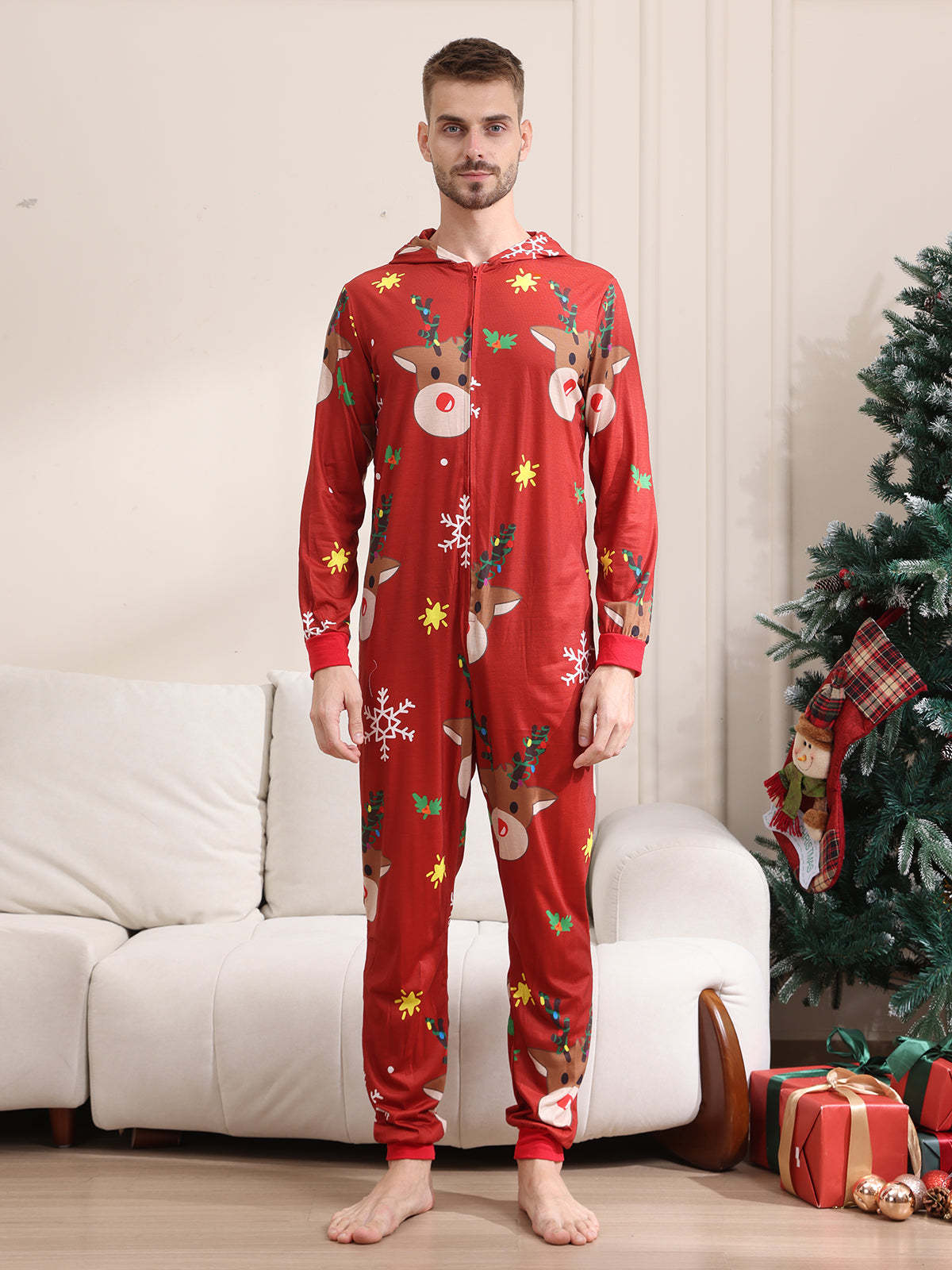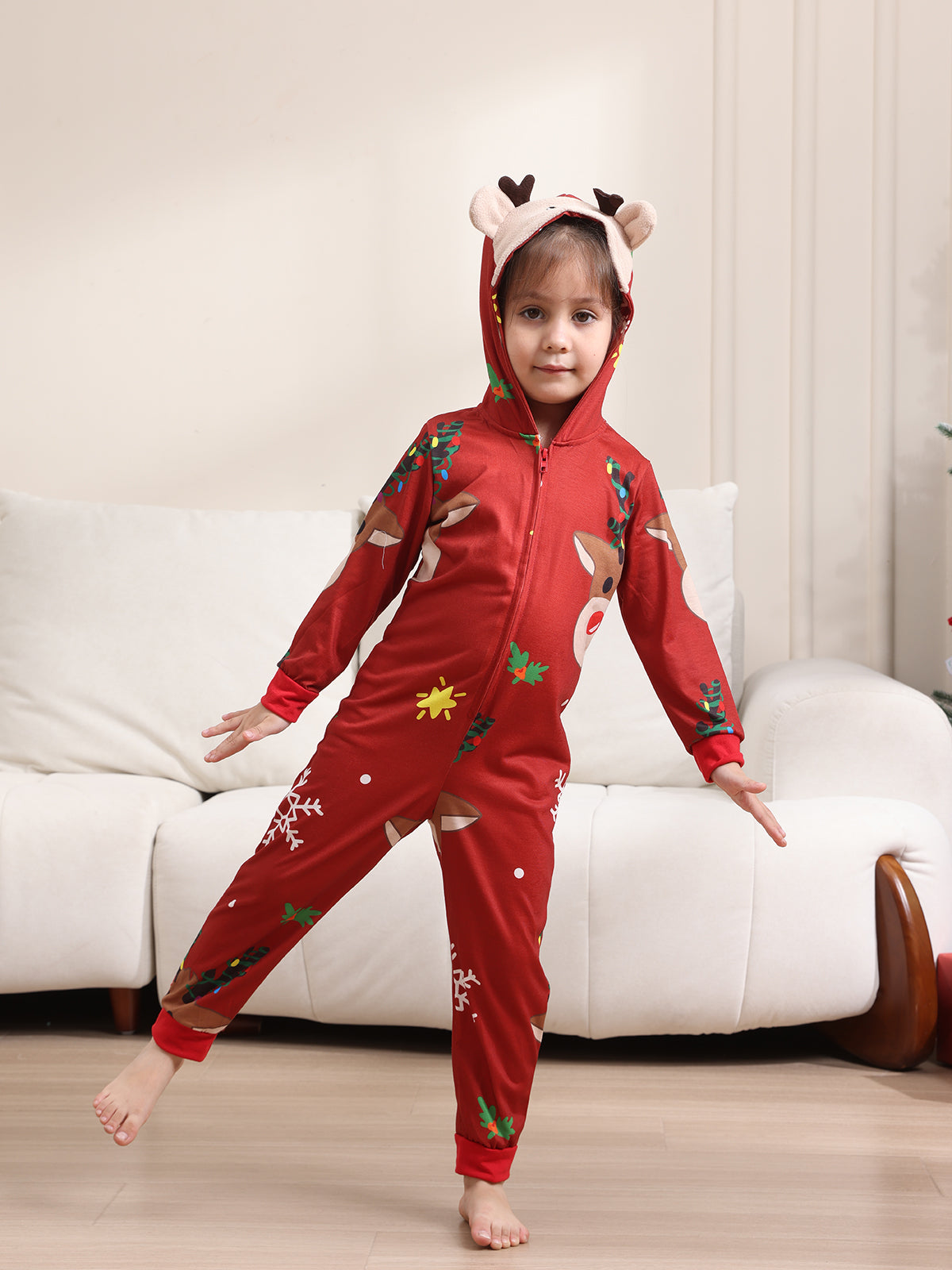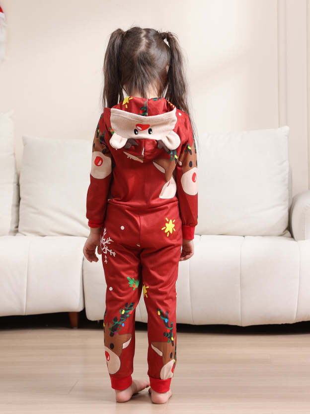 Christmas Deer Print Long-sleeve Red Onesies Pajamas