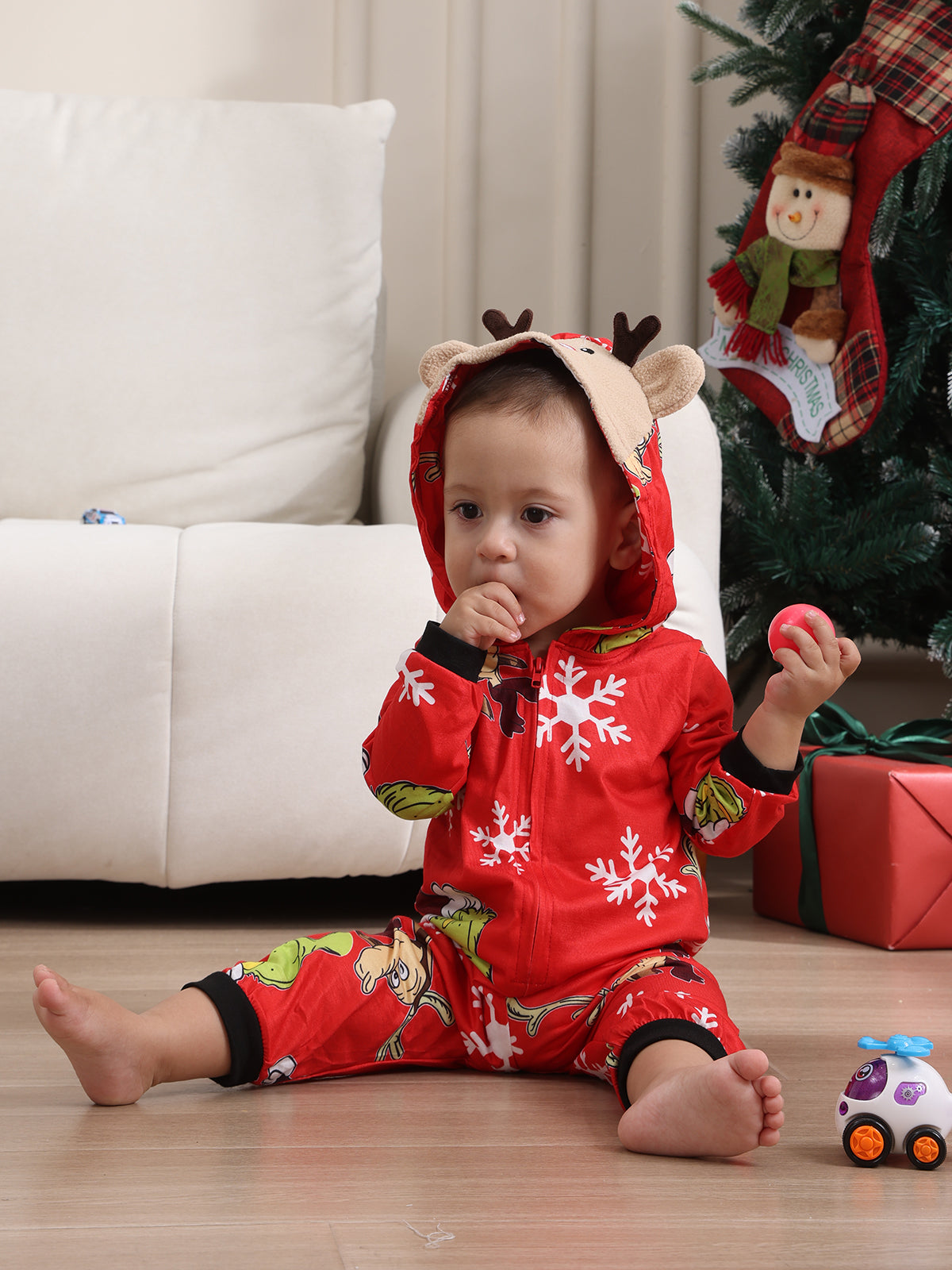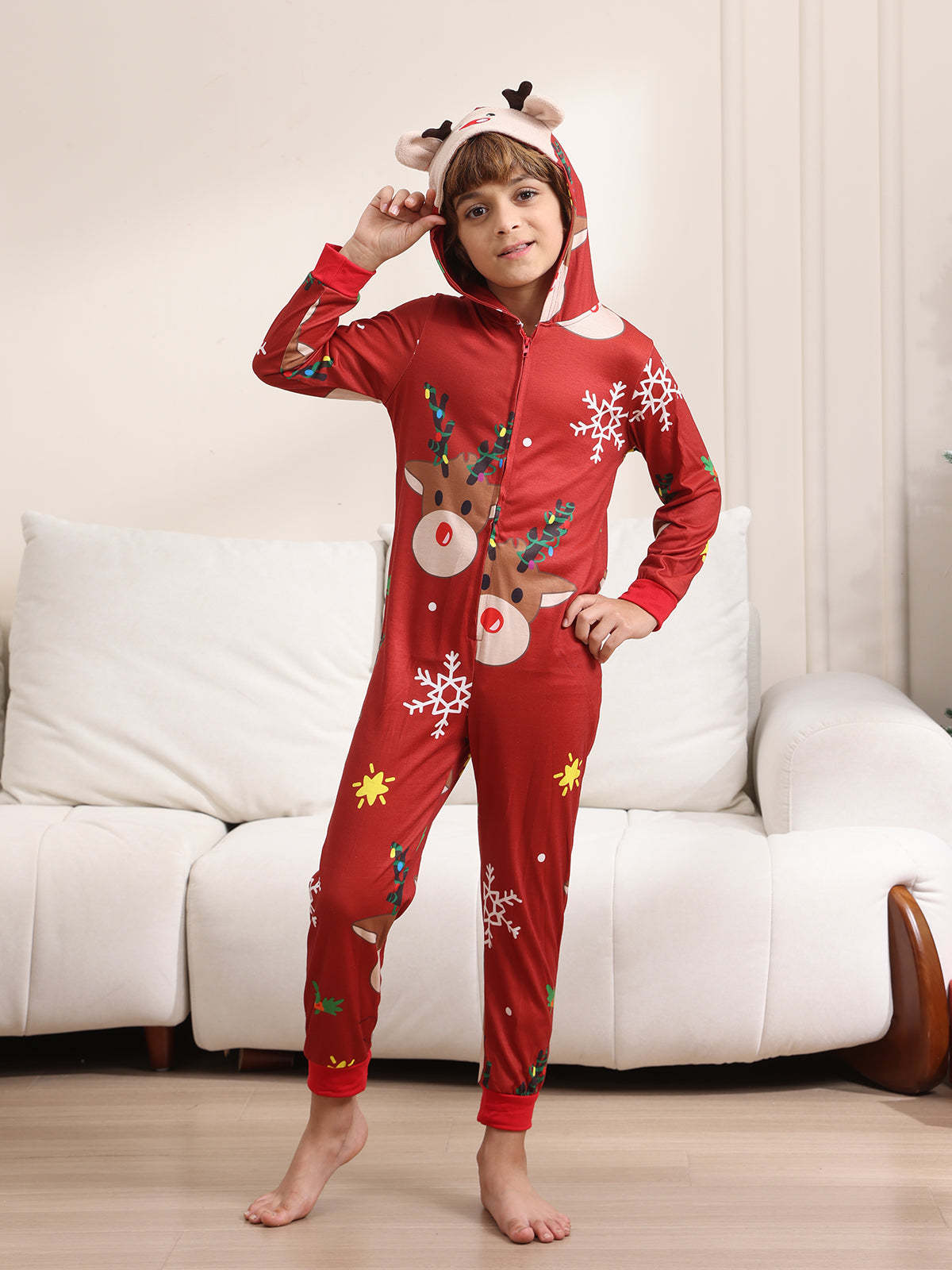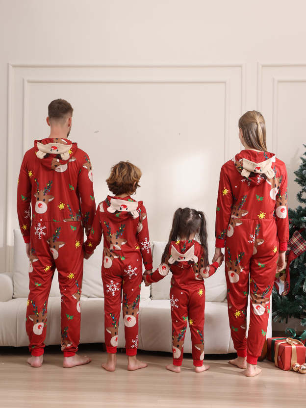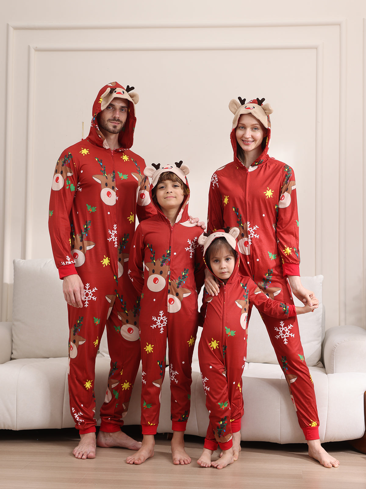 Christmas Deer Print Long-sleeve Red Onesies Pajamas