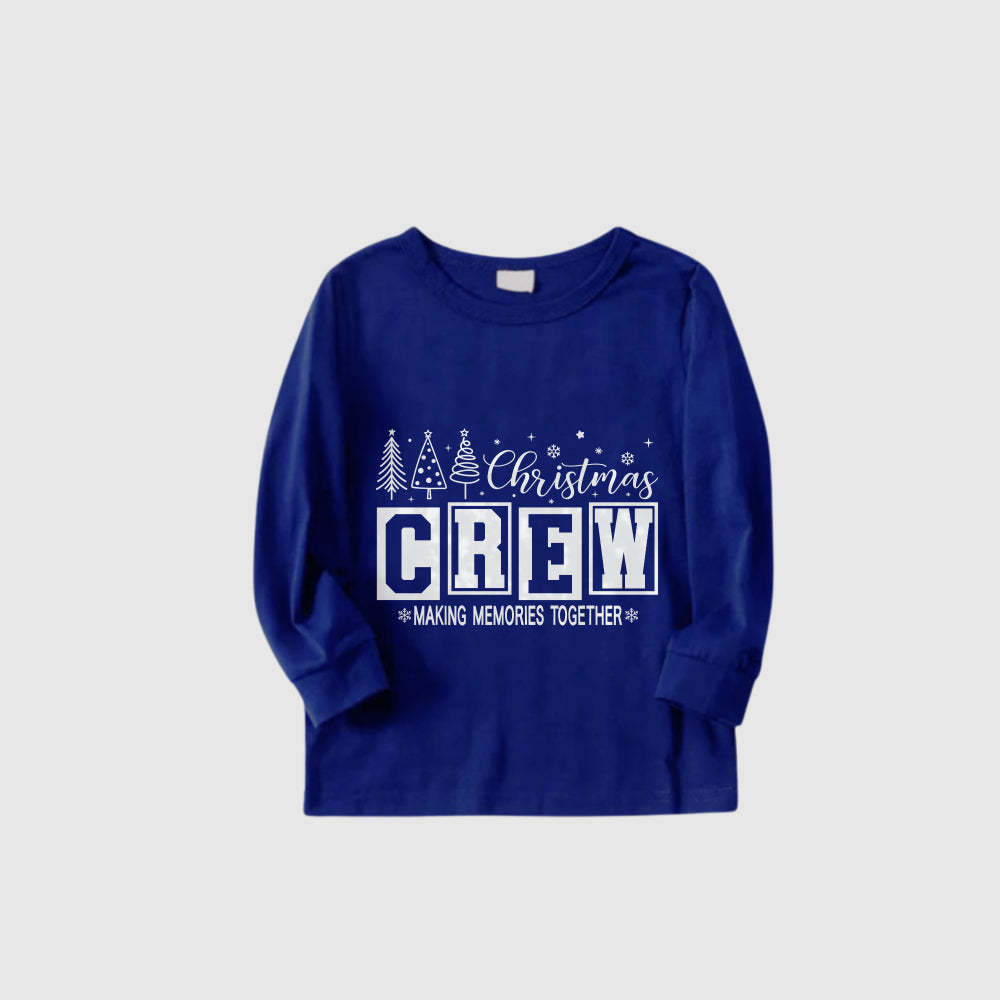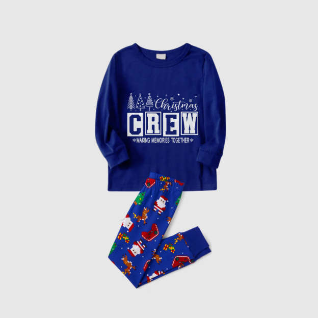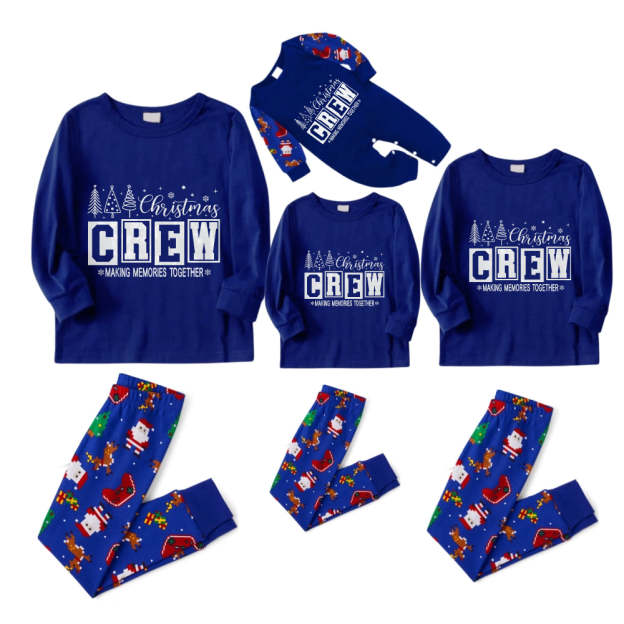 Christmas Family Matching Pajamas-Cozy Blue Pjs Set with "Christmas Crew Making Memories Together" Print