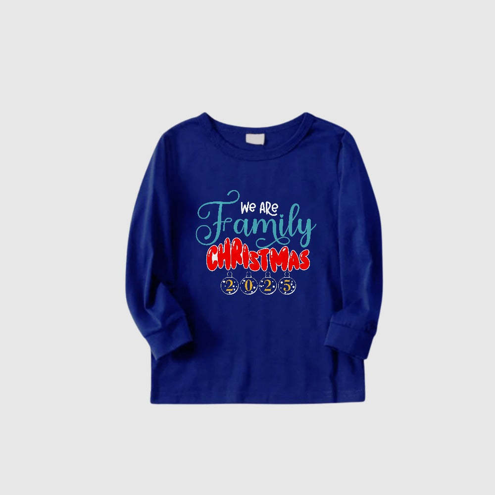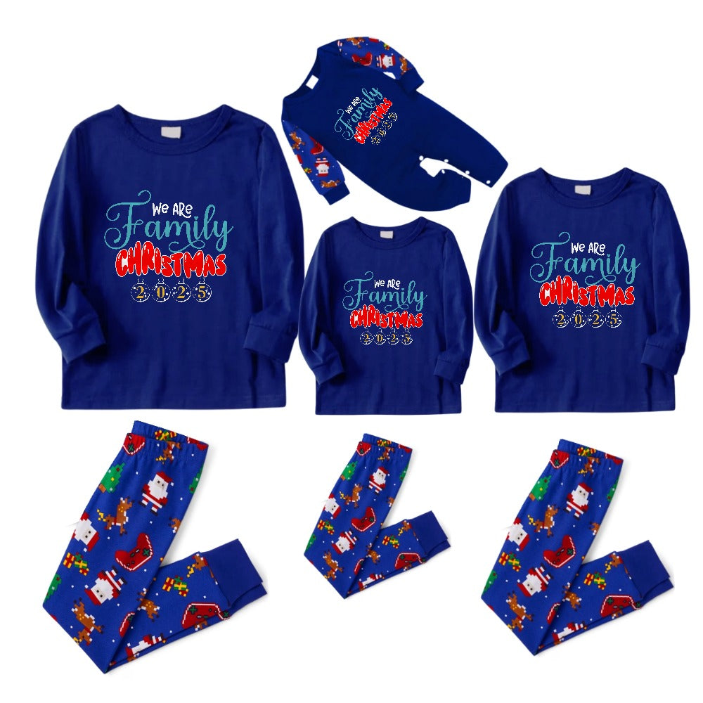 Christmas Family Matching Pajamas-Cozy Blue Pjs Set with "We Are Family Christmas 2025" Print