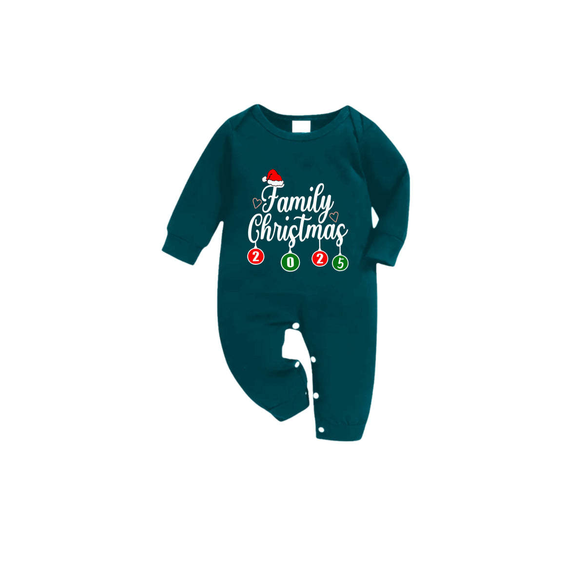 Christmas Family Matching Pajamas-Dark Green&Deer Patterned Pjs Set with "Family Christmas 2025" Slogan Print
