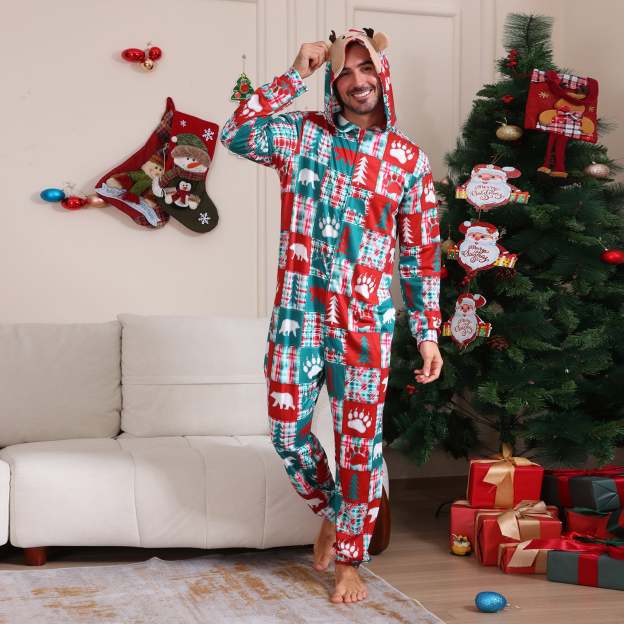 Christmas Pattern Print Long-sleeve Onesies Pajamas