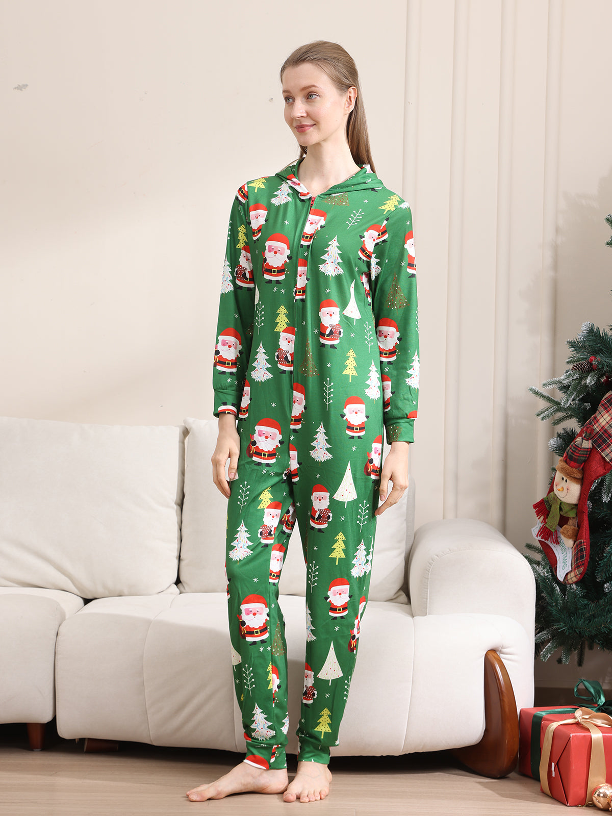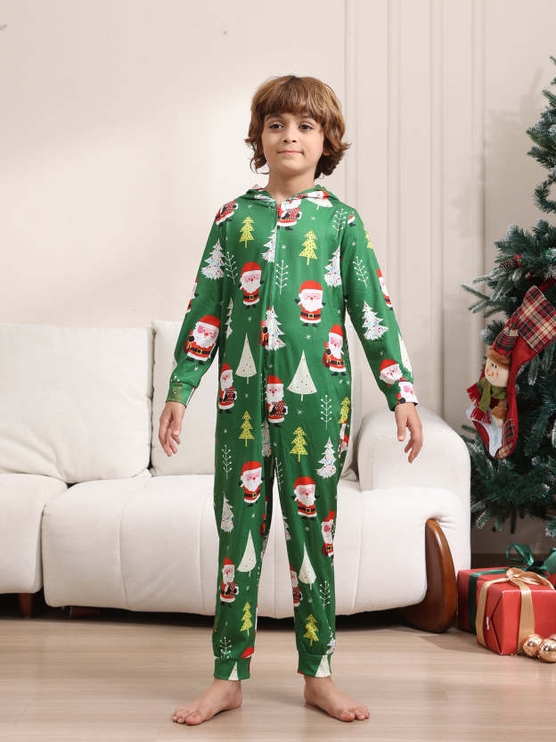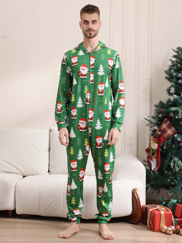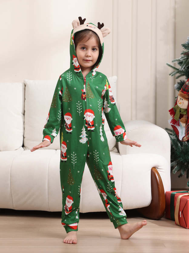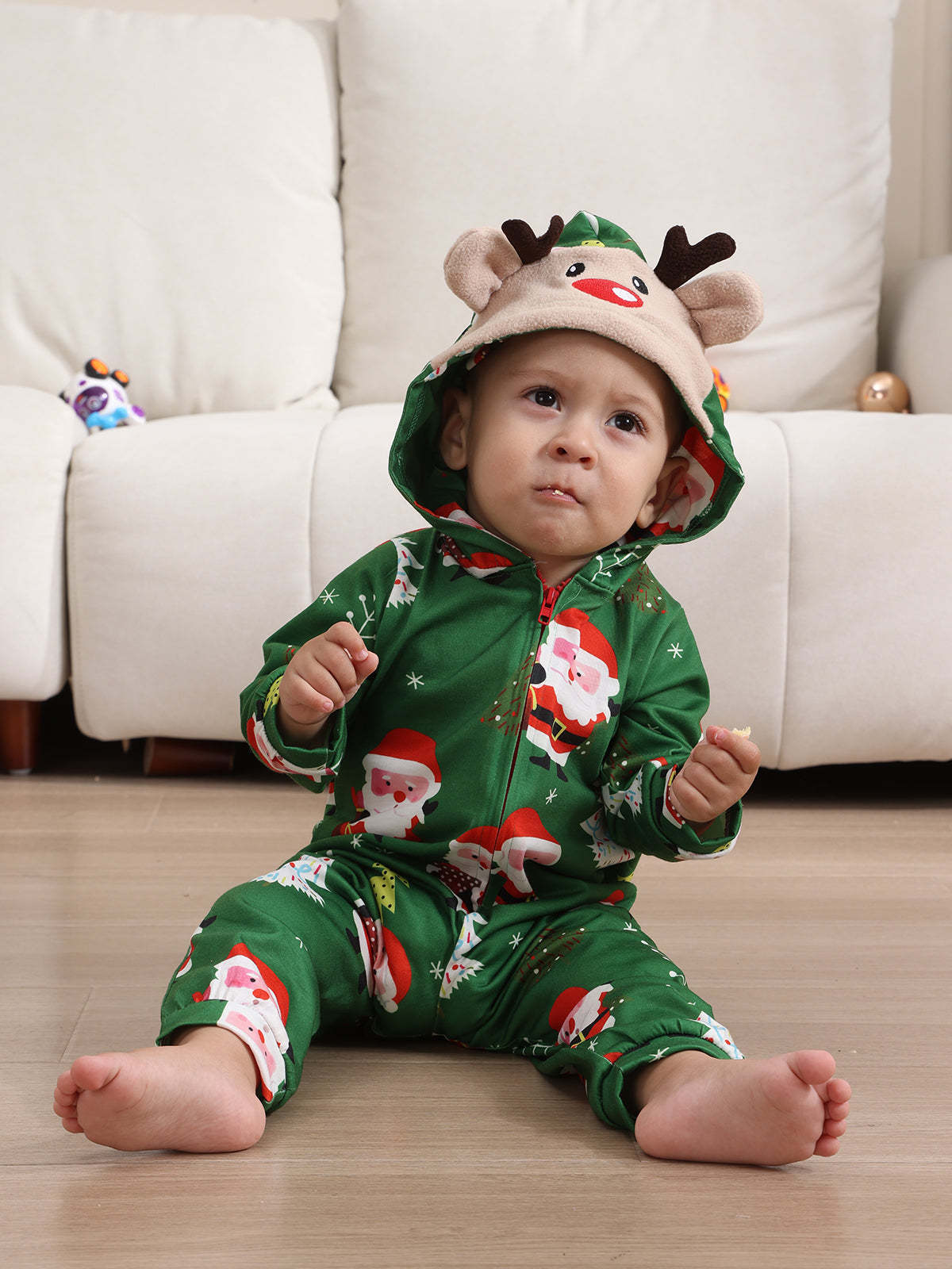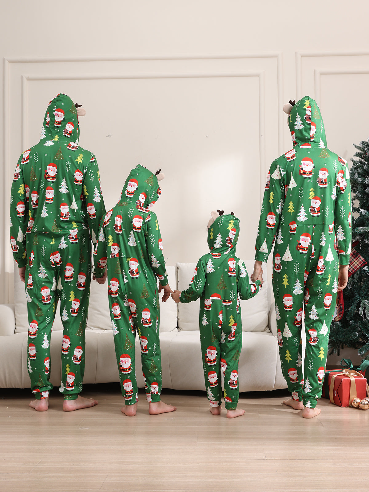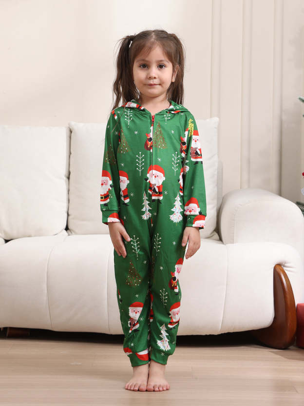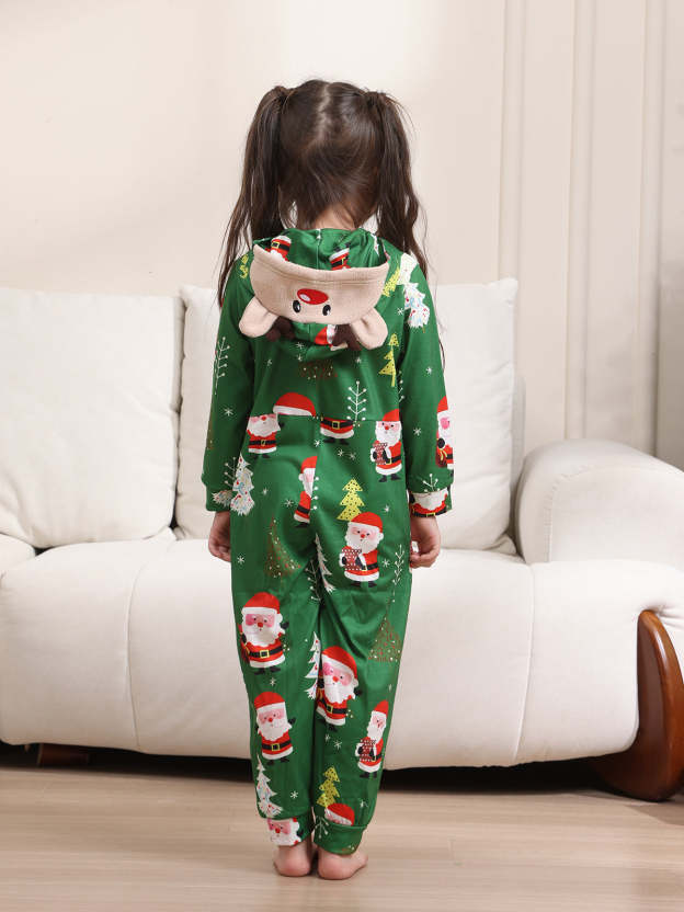 Christmas Santa Print Long-sleeve Green Onesies Pajamas