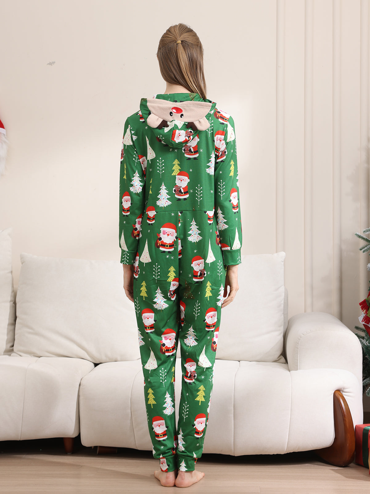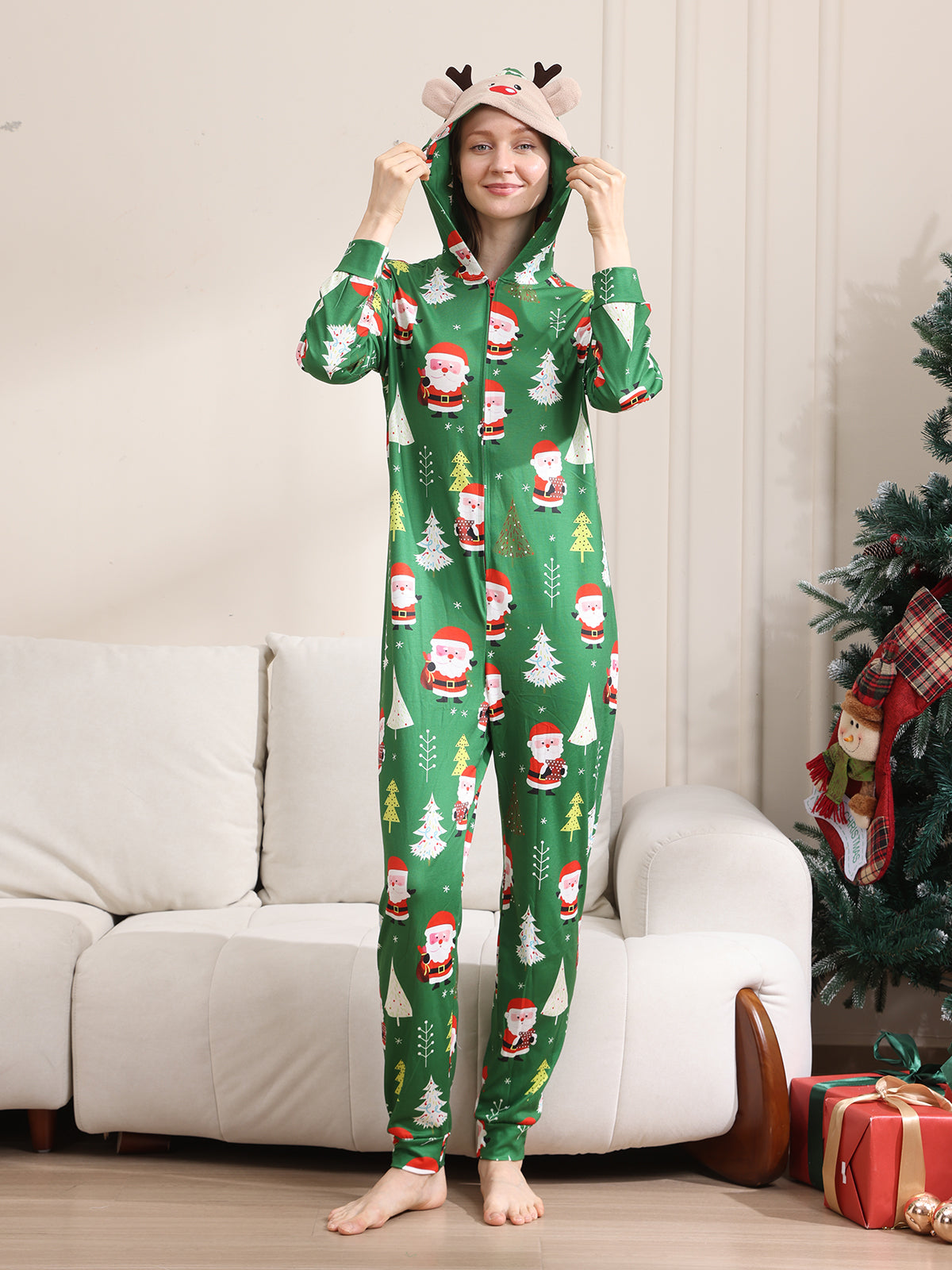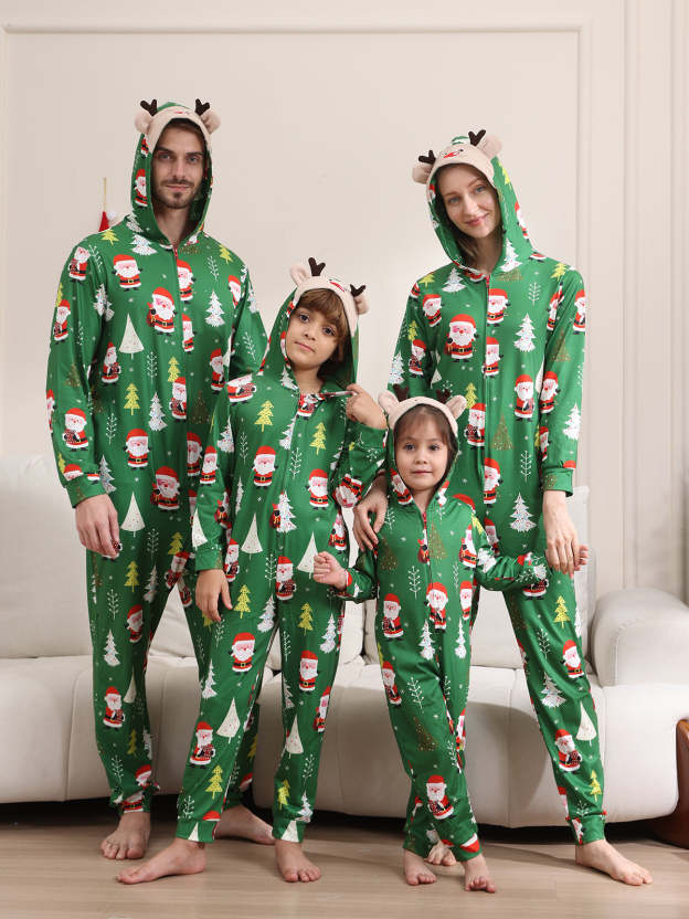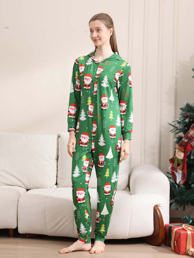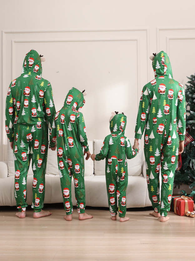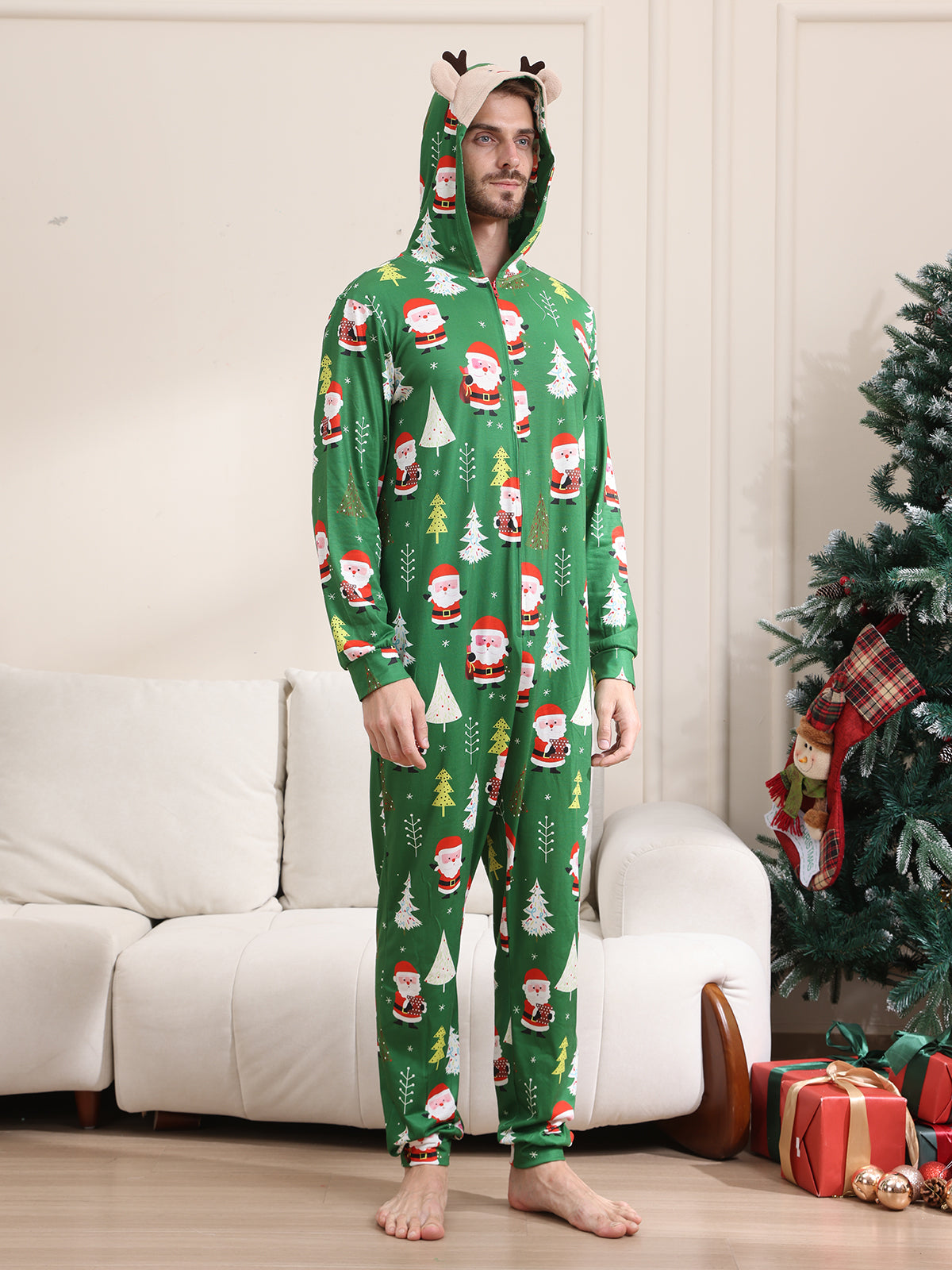 Christmas Santa Print Long-sleeve Green Onesies Pajamas