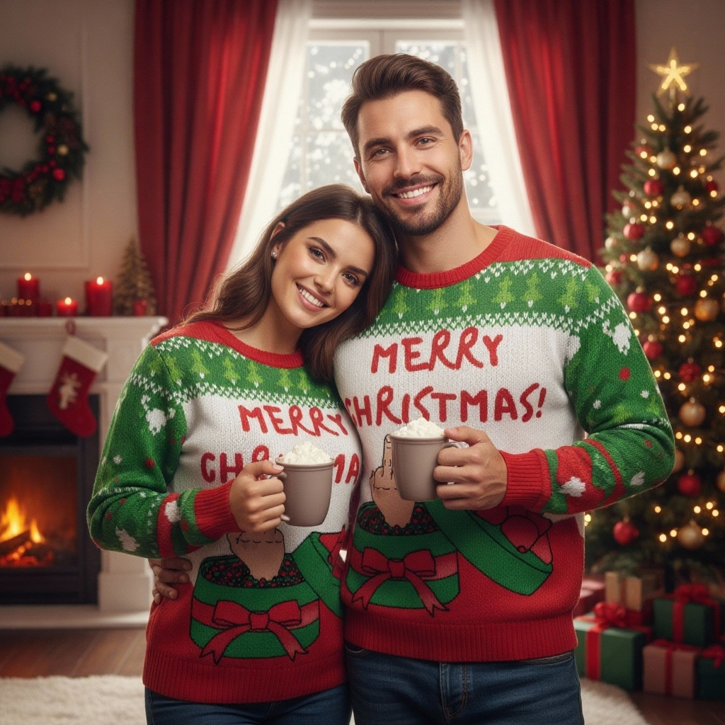 Christmas Slogan Print Unisex Ugly Christmas Sweater - Funny Holiday Party Pullover