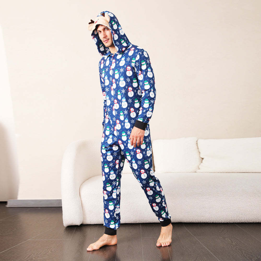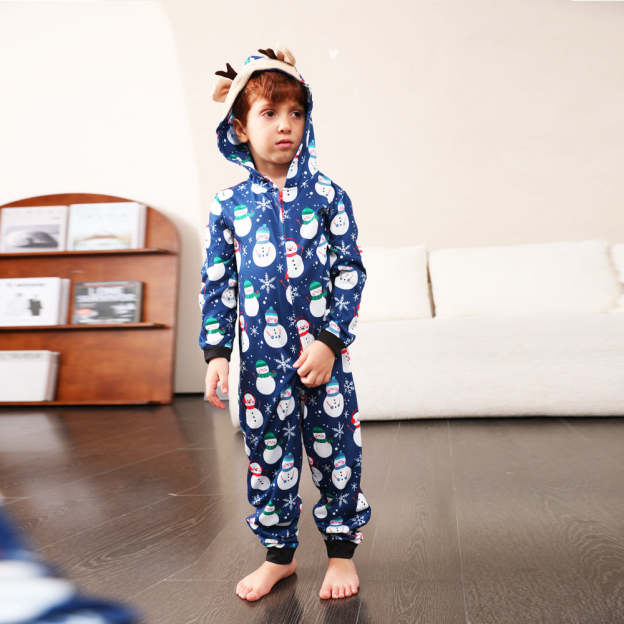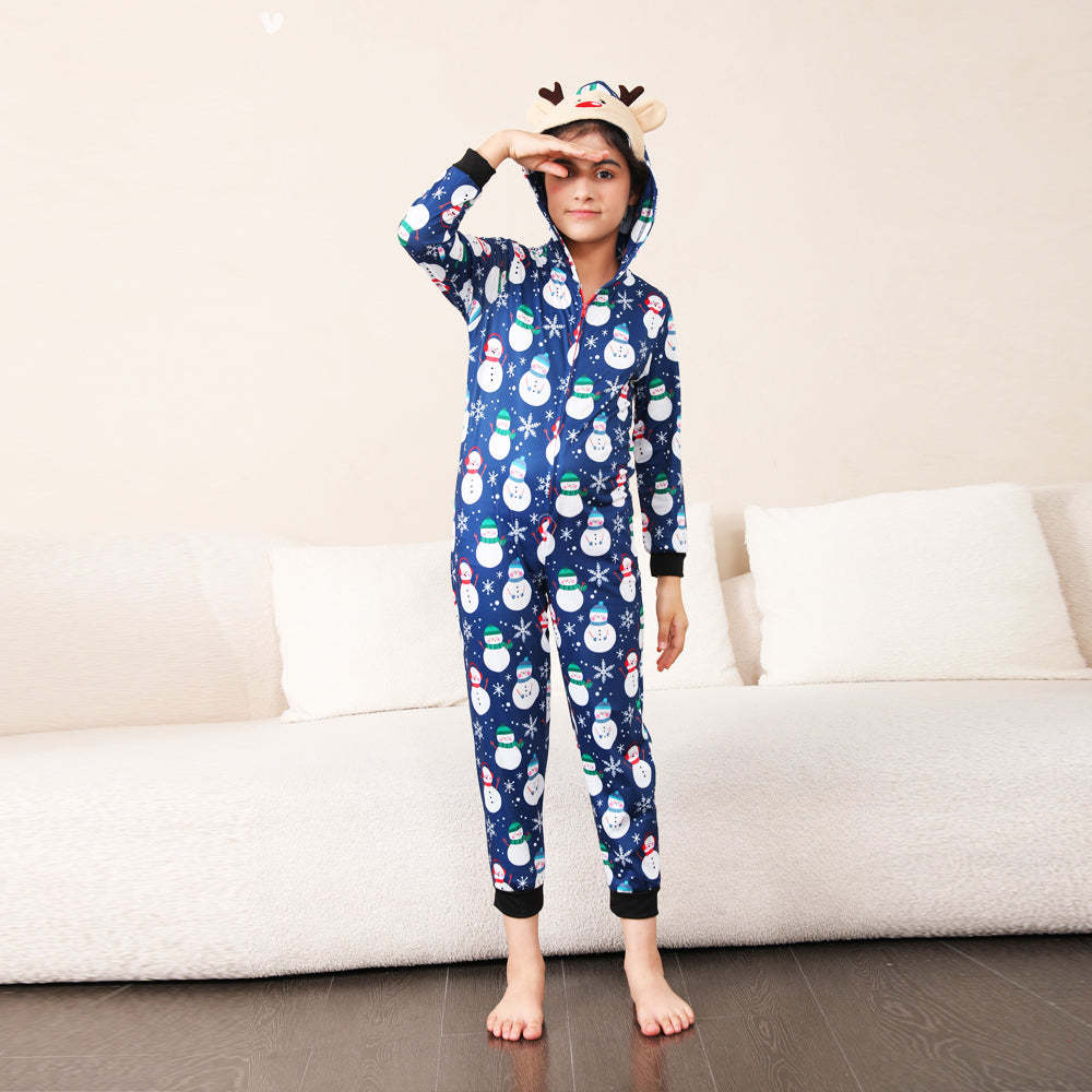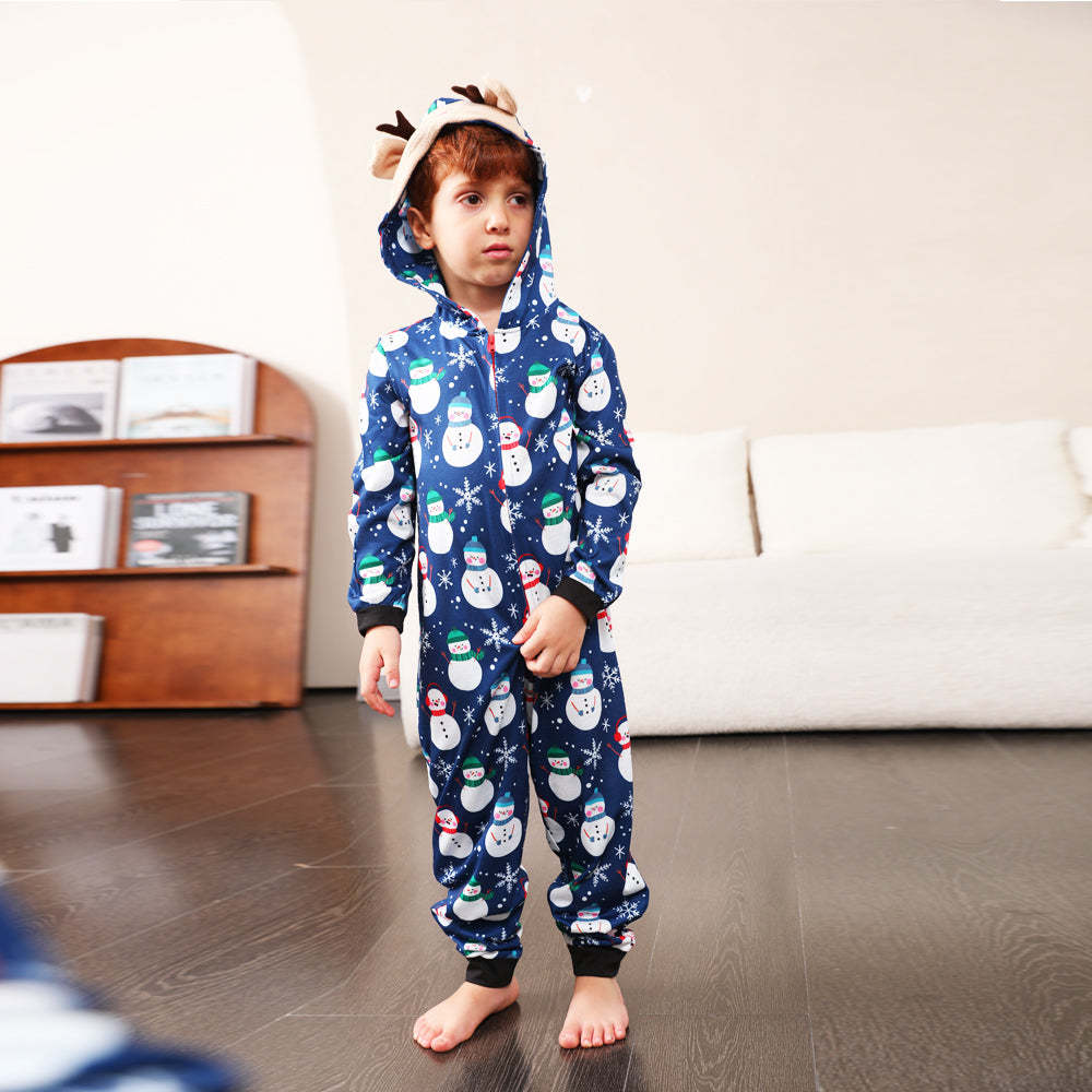 Christmas Snowman Print Long-sleeve Onesies Pajamas Sets