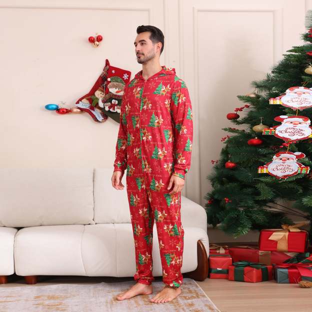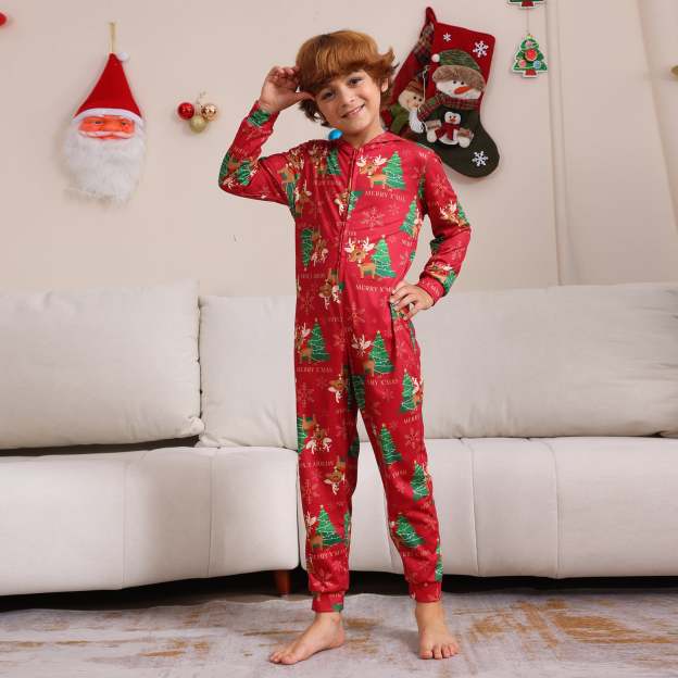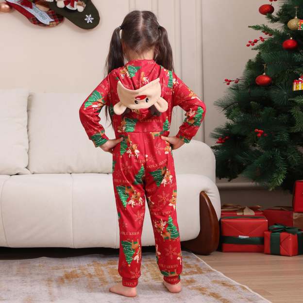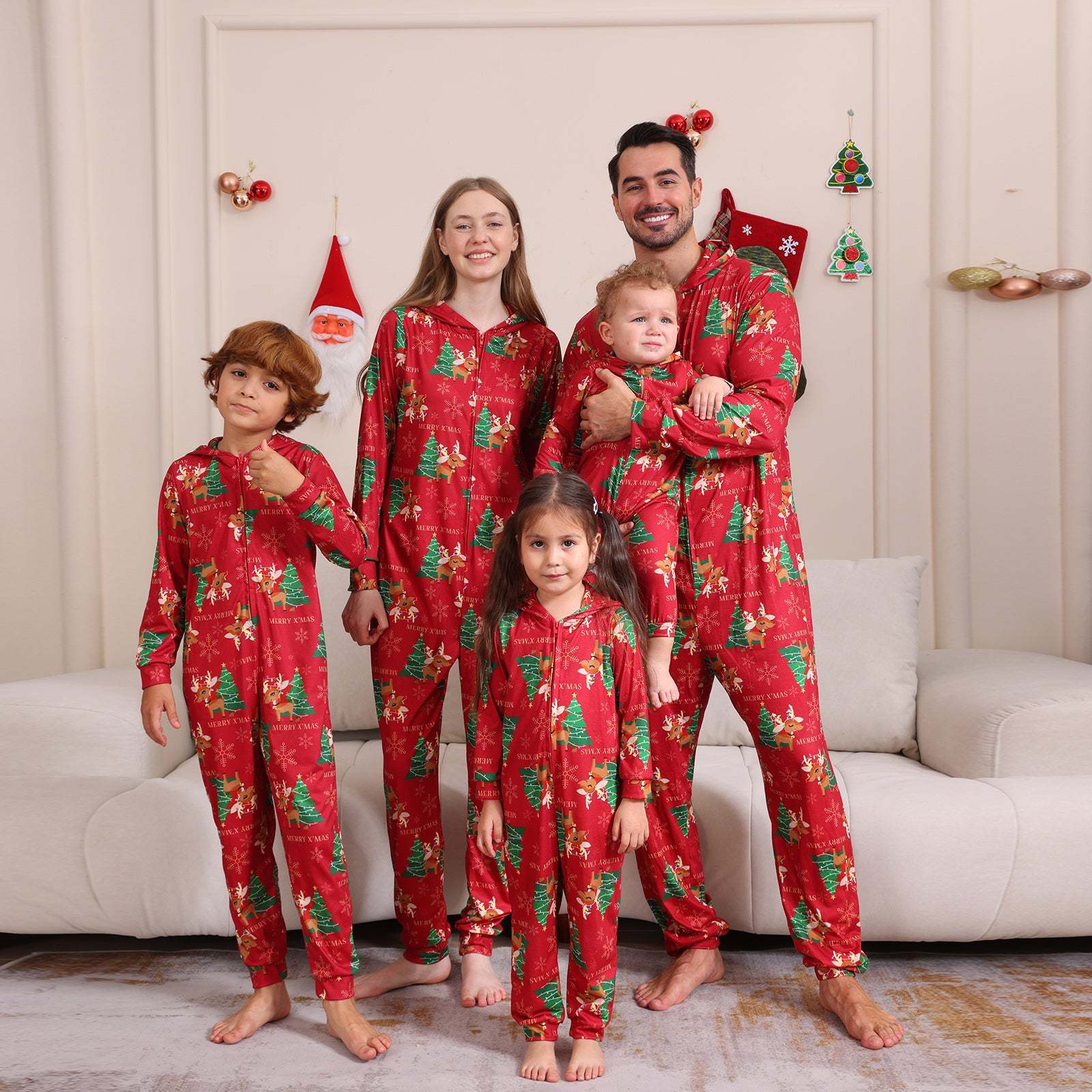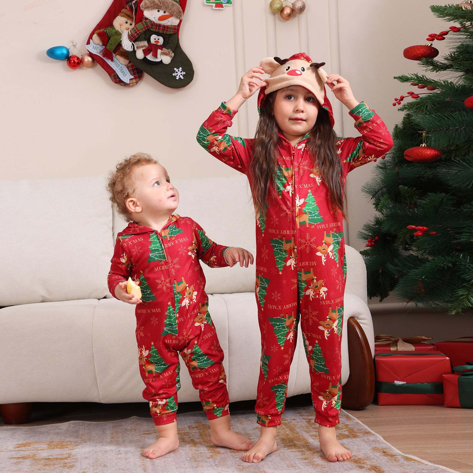 Christmas Tree and Elk Print Long-sleeve Onesies Pajamas
