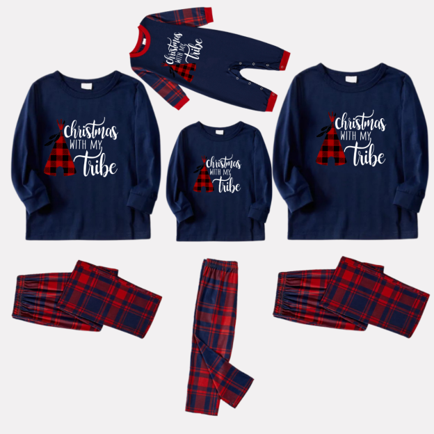 Get ready to cozy up in style with our "Christmas Tube and Letter Print Blue Long Sleeve Top with Red & Blue Plaid Family Matching Pajamas". perfect for the festive season. This adorable ensemble is designed for the whole family. including your beloved furry friend.