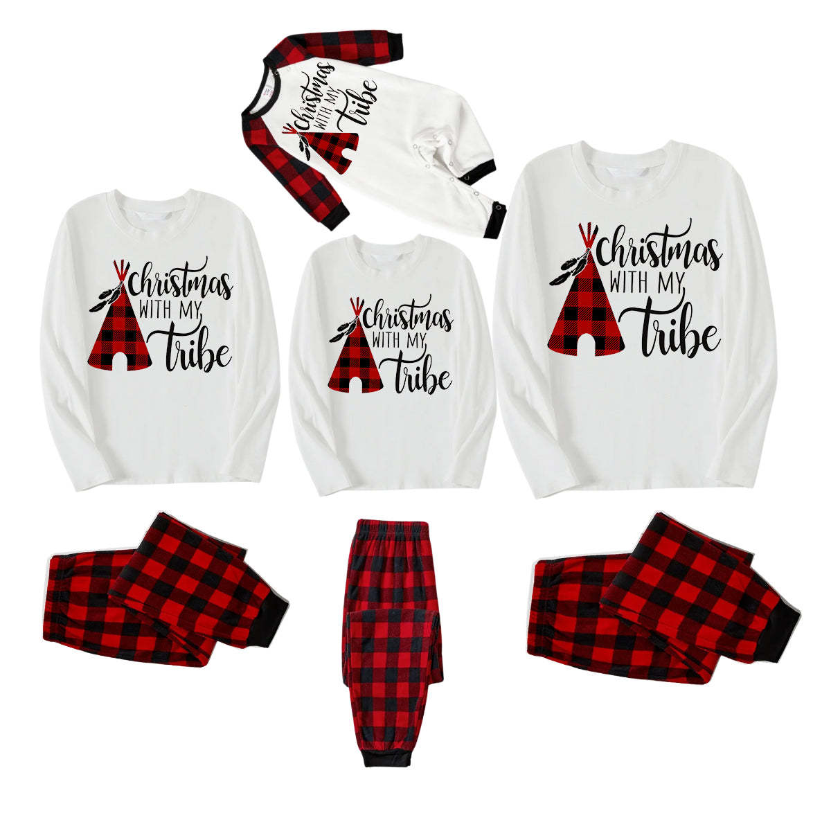 Get ready to cozy up in style with our ''"Christmas With My Tribe" Pattern White Long Sleeve with Black&Red Plaid Pants Family Matching Pajamas''. perfect for the festive season. This adorable ensemble is designed for the whole family. including your beloved furry friend.