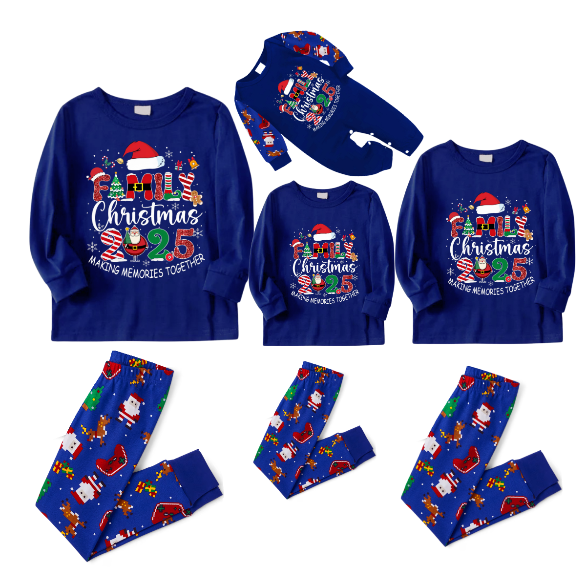 Cozy Blue Christmas Pajamas Set With "Family Christmas 2025 Making Memories Together" Text Print