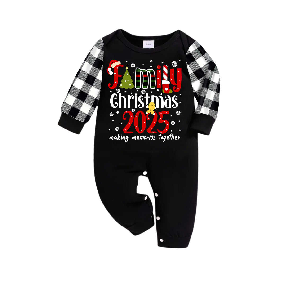 Cute "Family Christmas 2025" Text Print Black and White Plaid Family Matching Pajamas
